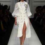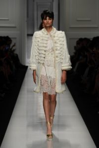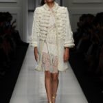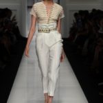 Al di la di ogni considerazioni derivante dal gusto e stile personale che possa far apprezzare o meno le collezioni di Ermanno Scervino, è necessario riconoscere allo stilista fiorentino un grande lavoro di ricerca e di sperimentazione, l’utilizzo di una manualità sartoriale tutta italiana; la cura meticolosa nella scelta dei materiali, nella costruzione dell’abito; l’attenzione ai dettagli che completano l’abito, gioielli, cinture, bottoni; nastri che disegnano un decoro su una tunichetta dalla linea pulitissima, o costruiscono il collo e il ficco di una camicia o sono semplicemente un nuovo tipo di monile, semplicissimo ed elegante.