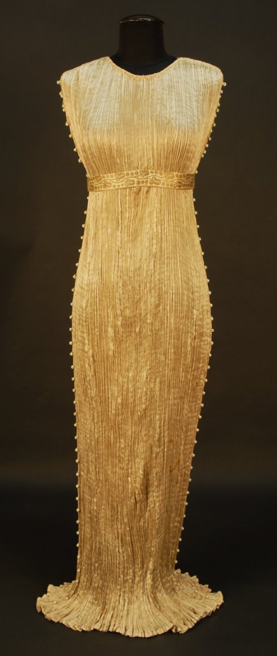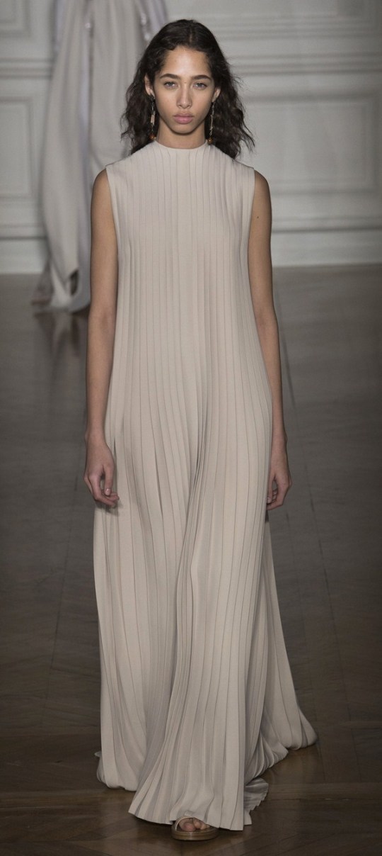 Il designer Pierpaolo Piccioli, direttore creativo della Maison, per l’estate riscopre la duttilità del plissè in modo esigente. Pur non essendo vistosa e sfacciata, la sua visione non teme di osare con la moda, ma lo fa in maniera equilibrata, senza ostentazioni. E lo fa rivisitando la più iconica creazione dell’eclettico Mariano Fortuny, la semplicissima tunica in seta plissettata Delphos che agli inzi del XX secolo rese immortali gli abiti delle dee dell’Olimpo. Un’infinità di minuscole piegoline su pepli dagli strati sovrapposti che hanno la capacità di trasformarci in affascinanti cariatidi.