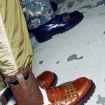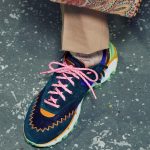 Le barriere tra il giorno e la sera cadono, ed i mocassini in pelle decorati da borchie si alternano a sneaker patchwork con stringhe dai colori fluo.