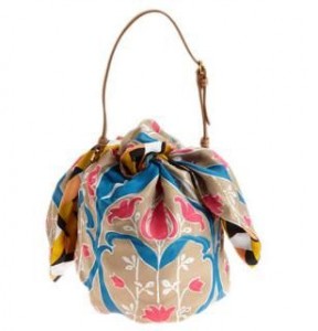 Il modello “Foulard Scarf Tie”, è una borsa a secchiello con chiusura a nodo, realizzata con un fazzoletto di seta stampata a colori vivaci. La collezione segue tre nuclei cromatici : nuances più calde come l’arancio, il giallo e l’ocra; toni di rosa, di fucsia e di azzurro; le tonalità fredde del bianco, del turchese, del blu e del viola. Il recupero delle stampe vintage della maison, i motivi floreali, a volte geometrici, ribadiscono l’ispirazione di gusto Liberty.