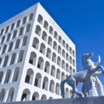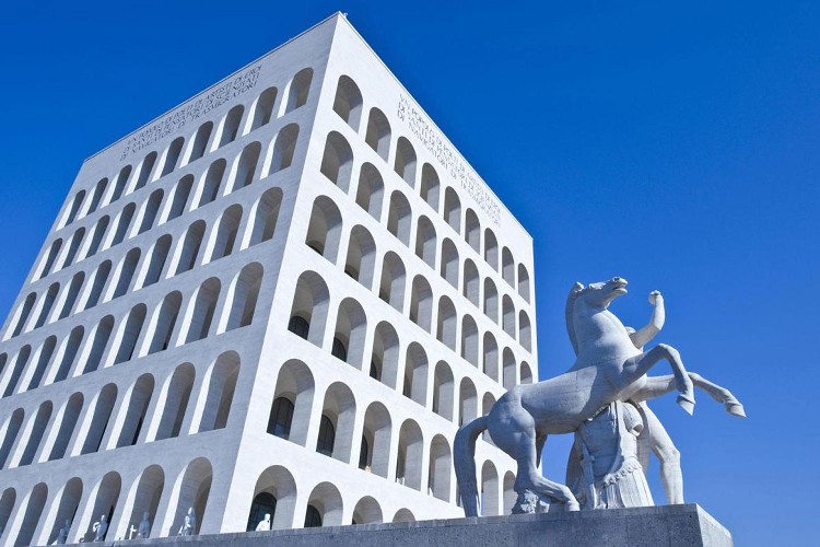 Sfondo ideale di molti film che hanno fatto epoca (i felliniani “La dolce vita”, “8 ½”, “Boccaccio 70”; “L’eclisse” di Antonioni; “Il ventre dell’architetto” di Greenaway), il monumentale edificio interamente rivestito di travertino, divenuto simbolo dell’Eur, sorse per celebrare l’Esposizione Universale del 1942 rielaborando in chiave moderna le glorie architettoniche dell’antica Roma. Noto anche come “Colosseo Quadrato”, fu progettato da Giovanni Guerrini, Ernesto Bruno La Padula e Mario Romano, sotto la supervisione di Marcello Piacentini, e inaugurato nel 1940. Dopo decenni di abbandono e autentici saccheggi adesso sembra rinato dunque, grazie anche al progetto di riqualificazione di Fendi che ha voluto riprendere l’intenzione originaria di rappresentare ed esaltare in esso le doti, i mestieri ed i talenti italiani, lungi da qualsiasi ideale di regime.