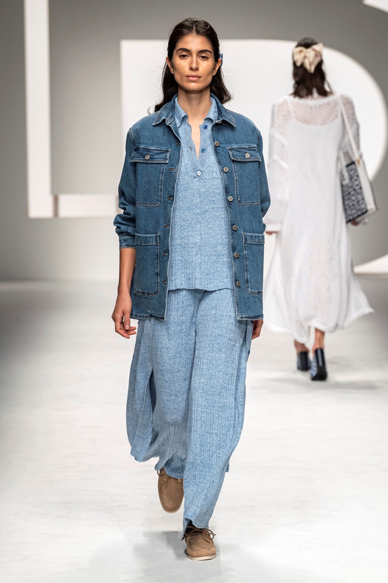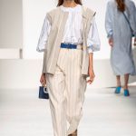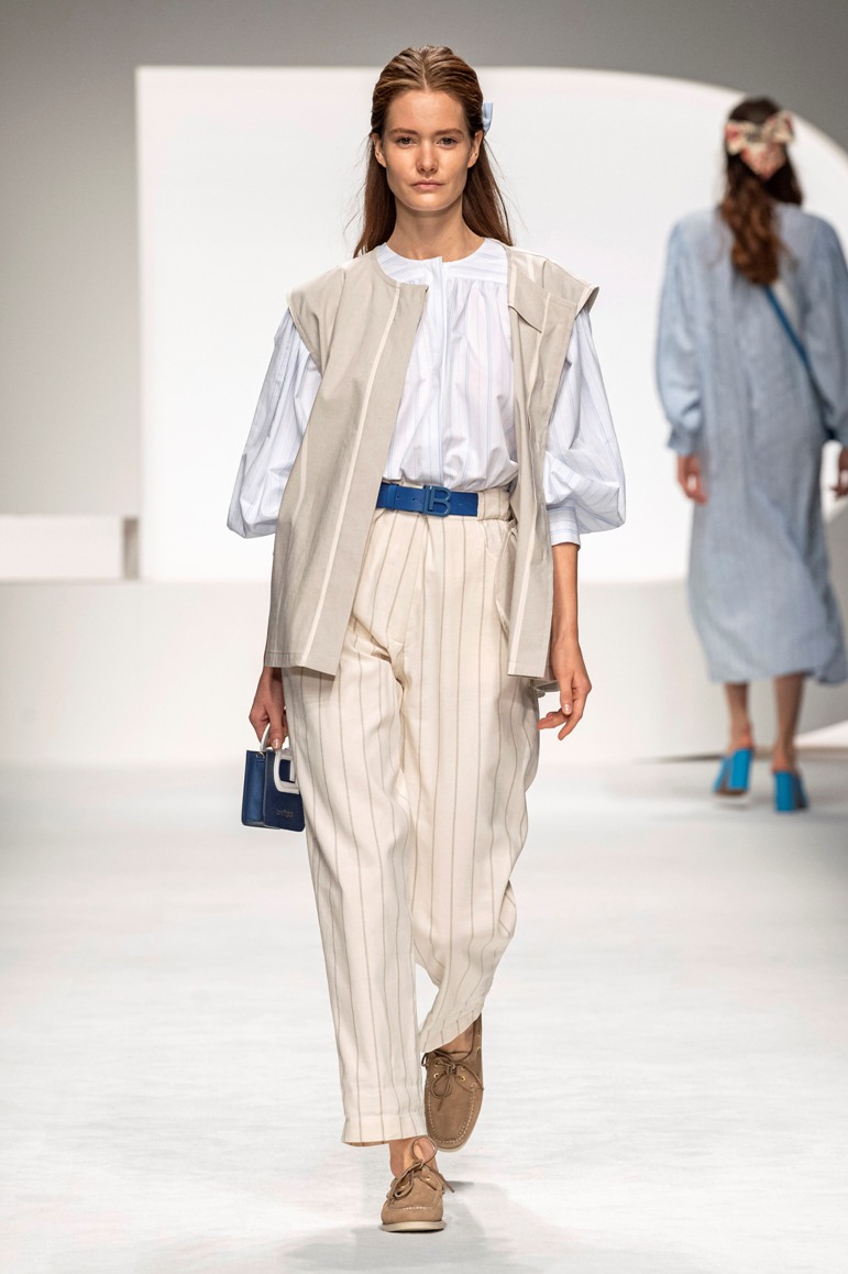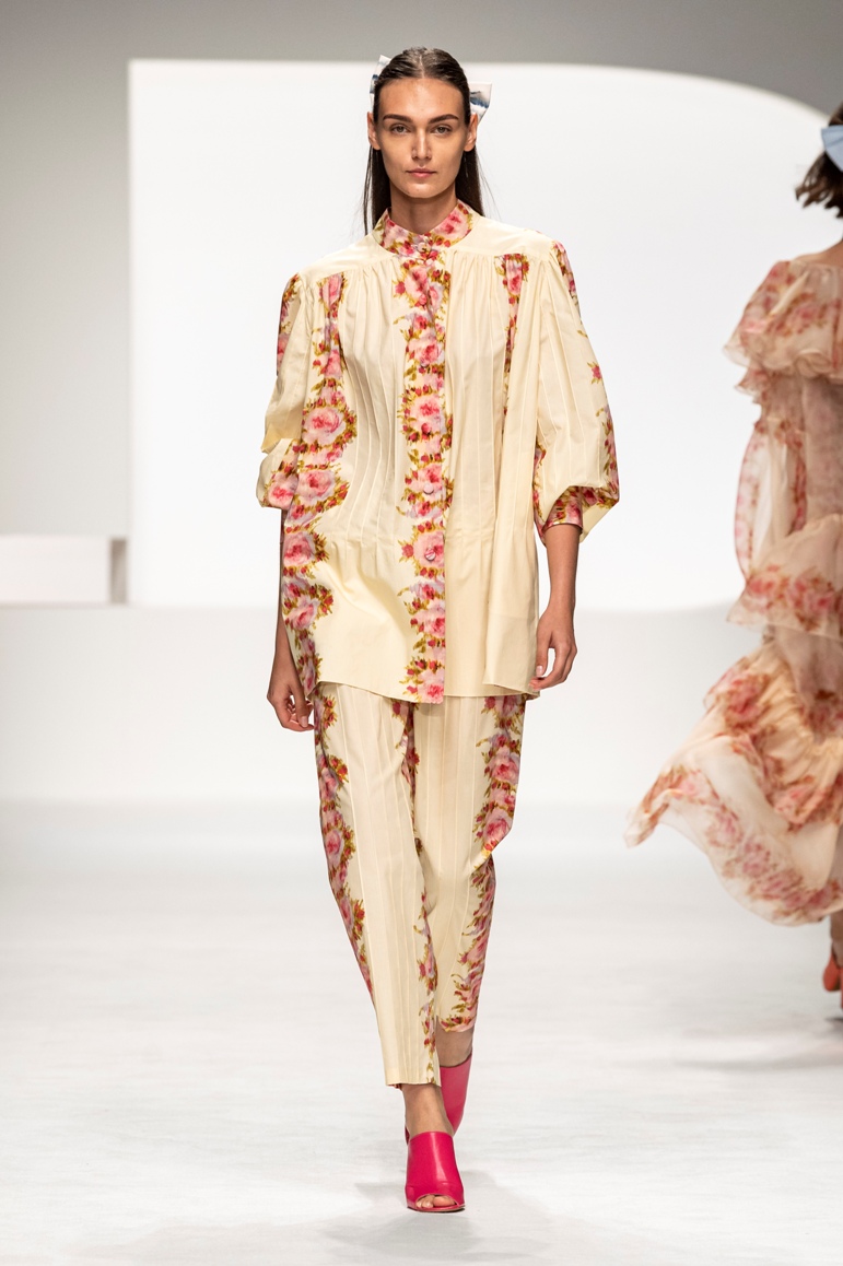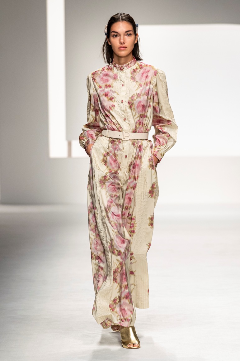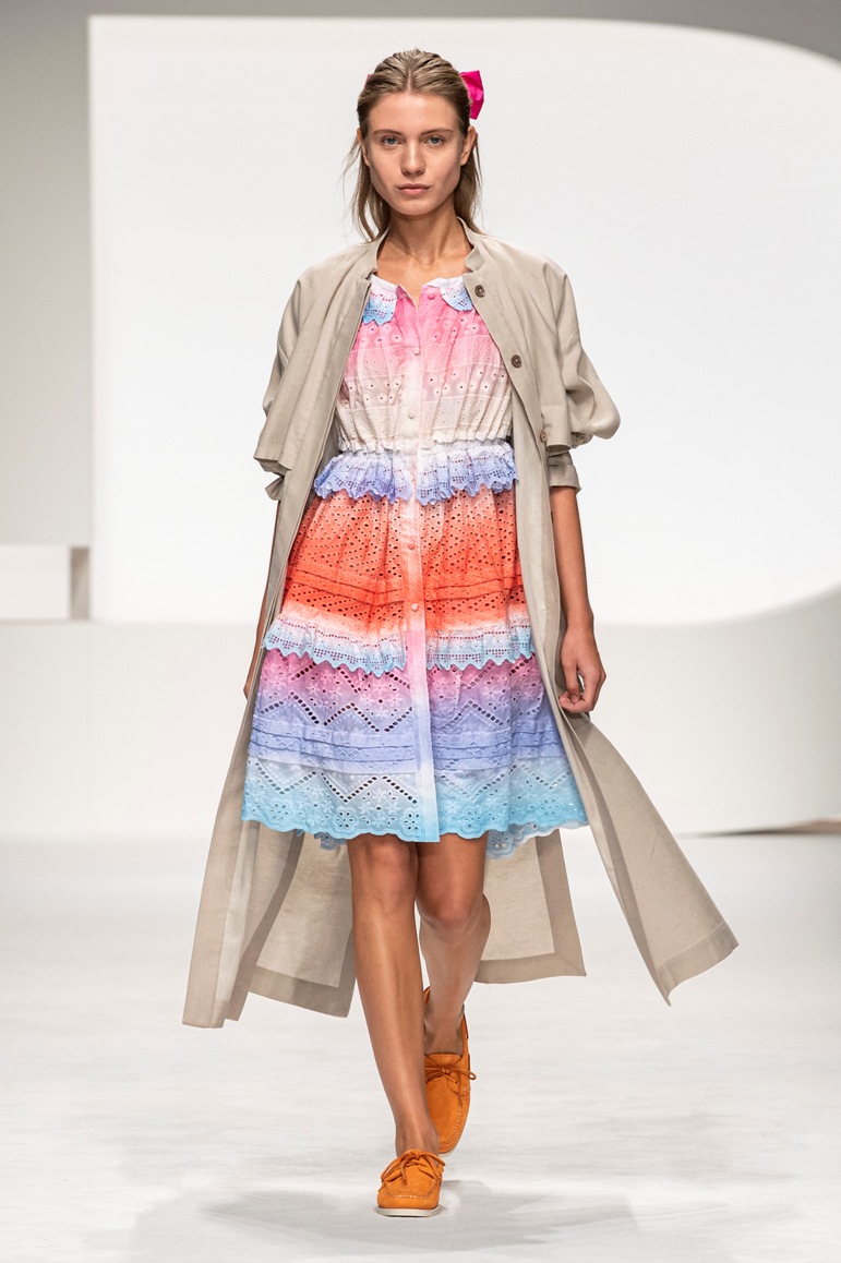 Una collezione all’insegna della leggerezza, dell’eleganza, della femminilità, e della semplicità, cifre stilistiche della maison, modernamente reinterpretate senza cedimenti a contaminazioni eccetto forse il taglio delle giacche di foggia mannish. Le linee sono scivolate,, talvolta, in alcuni capi i volumi delle maniche e le dimensioni delle scollature sono enfatizzati; la linea acquista lievemente rilievo solo attraverso le balze dei tessuti leggeri. I pantaloni sono comodi a vita alta; le giacche sono strutturate, ma oversize. Il denim si ingentilisce e si fa morbido. Le stampe di fiori sono tenue e talvolta decise; le righe sottilissime.