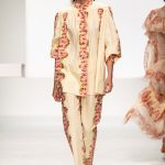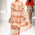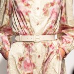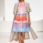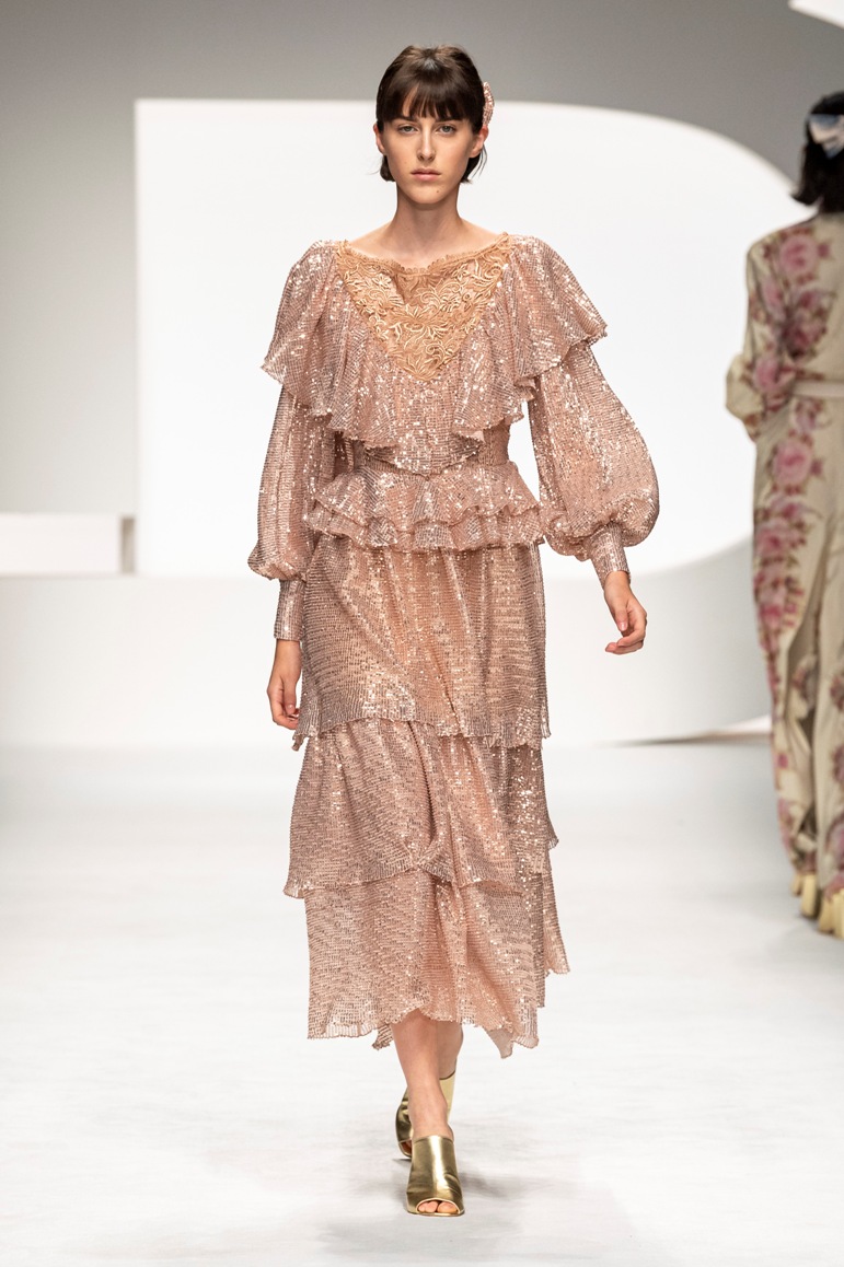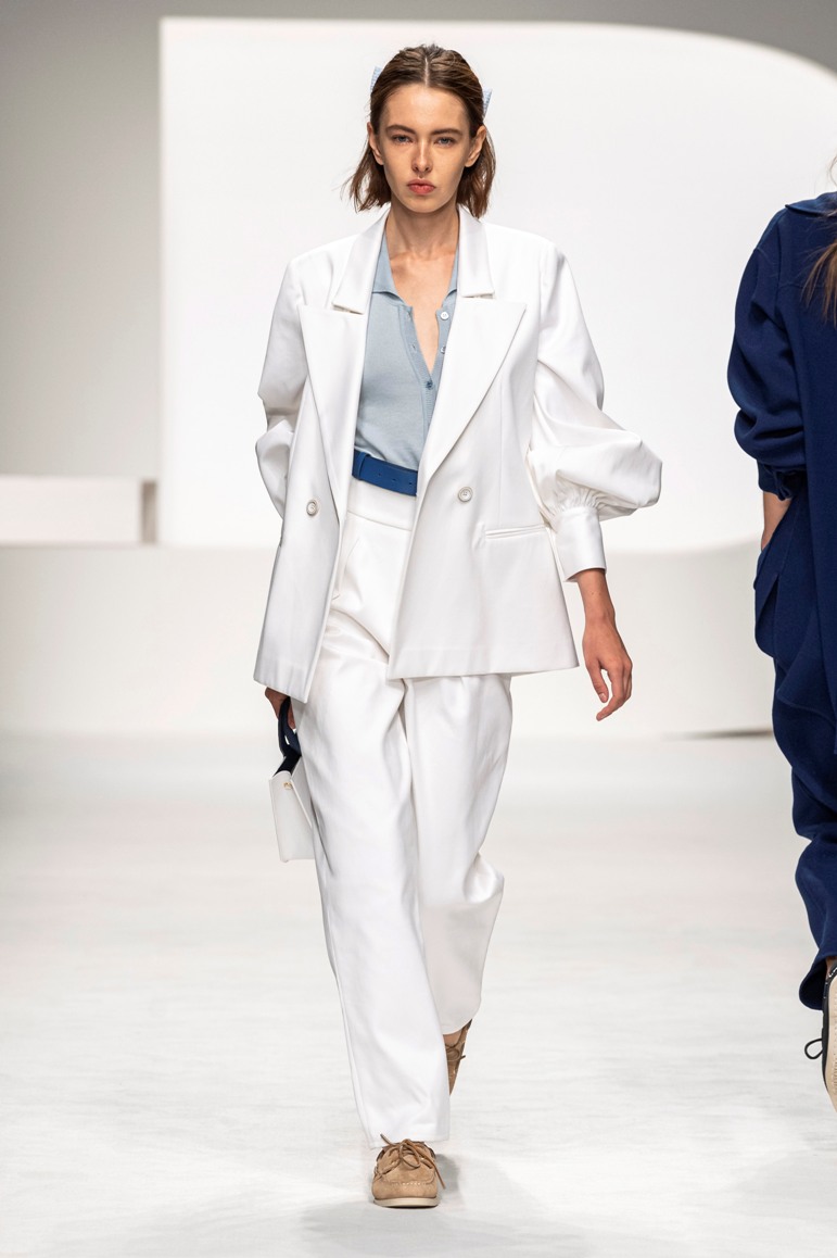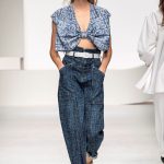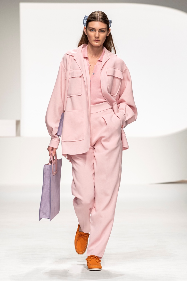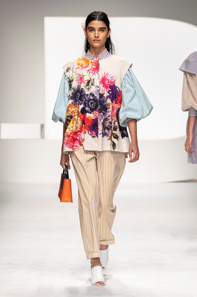 Una collezione all’insegna della leggerezza, dell’eleganza, della femminilità, e della semplicità, cifre stilistiche della maison, modernamente reinterpretate senza cedimenti a contaminazioni eccetto forse il taglio delle giacche di foggia mannish. Le linee sono scivolate,, talvolta, in alcuni capi i volumi delle maniche e le dimensioni delle scollature sono enfatizzati; la linea acquista lievemente rilievo solo attraverso le balze dei tessuti leggeri. I pantaloni sono comodi a vita alta; le giacche sono strutturate, ma oversize. Il denim si ingentilisce e si fa morbido. Le stampe di fiori sono tenue e talvolta decise; le righe sottilissime.