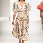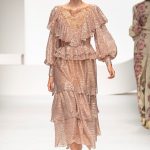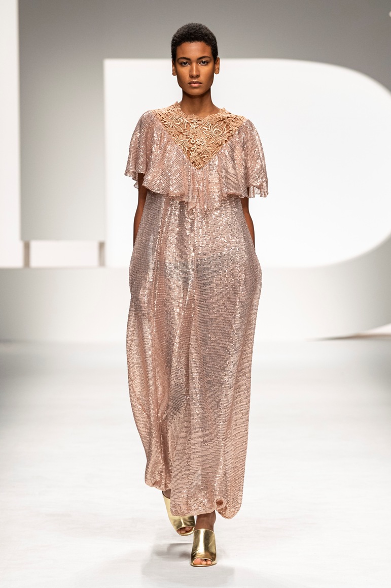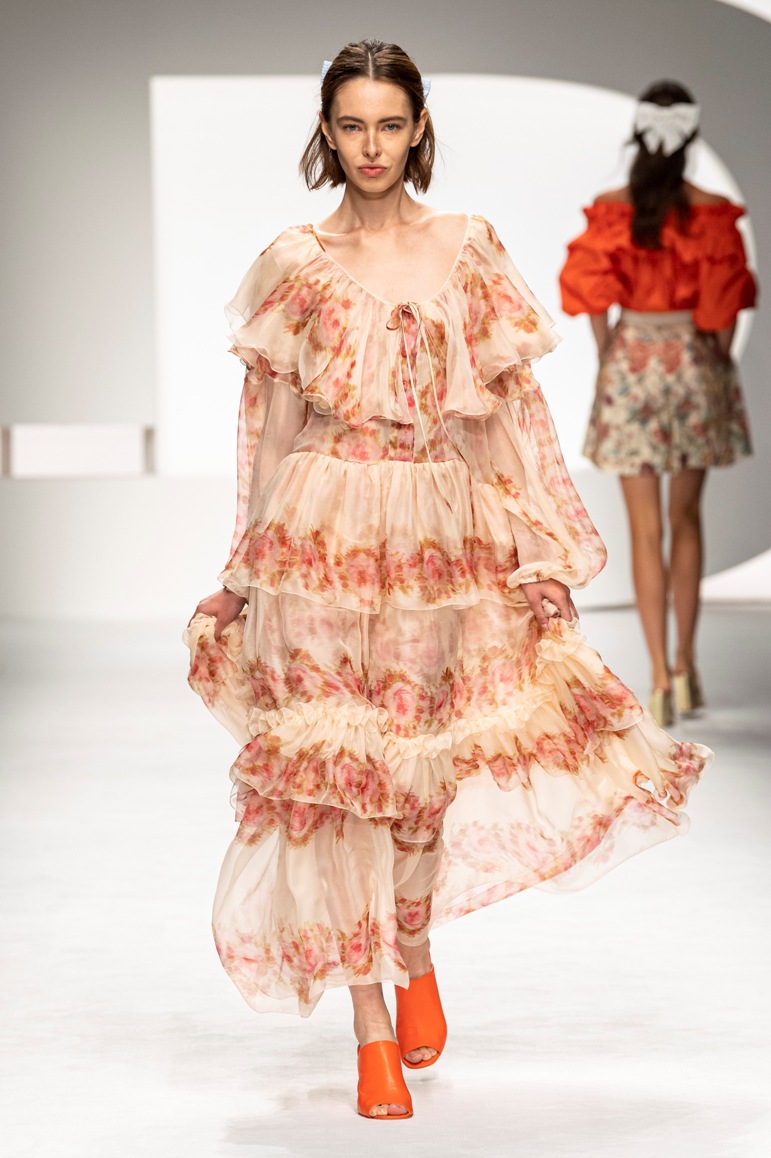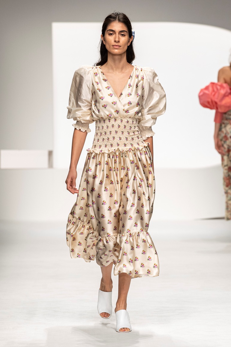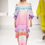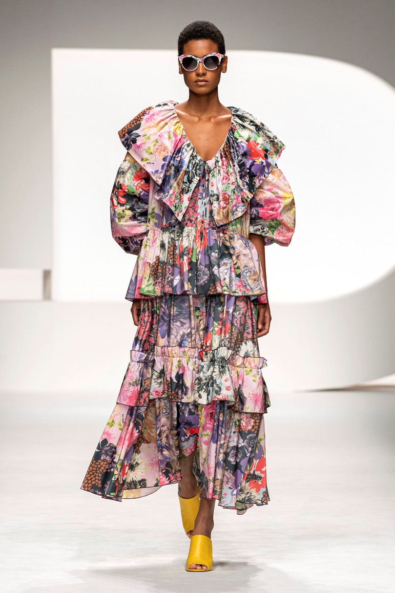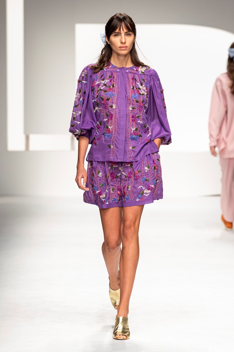 Una collezione all’insegna della leggerezza, dell’eleganza, della femminilità, e della semplicità, cifre stilistiche della maison, modernamente reinterpretate senza cedimenti a contaminazioni eccetto forse il taglio delle giacche di foggia mannish. Le linee sono scivolate,, talvolta, in alcuni capi i volumi delle maniche e le dimensioni delle scollature sono enfatizzati; la linea acquista lievemente rilievo solo attraverso le balze dei tessuti leggeri. I pantaloni sono comodi a vita alta; le giacche sono strutturate, ma oversize. Il denim si ingentilisce e si fa morbido. Le stampe di fiori sono tenue e talvolta decise; le righe sottilissime.