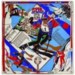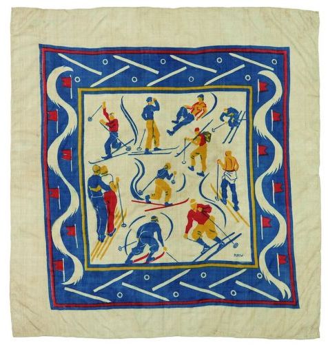 Tra i pezzi più interessanti in mostra a Courmayeur vi sono i tanti foulard dedicati alle Olimpiadi Invernali, come quello realizzato da Stoffelo per i Giochi di Saint-Moritz del 1948 o da Cattaneo Cravatte per i più recenti Giochi di Torino 2006, passando per le Olimpiadi di Oslo del ’52. Da segnalare anche un articolo in seta del 1920 ispirato ai primordi dello sci alpino, che idealmente si collega al modello con montagne stilizzate disegnato nel 2015 da Slavka Kolesar per Etoile de Marie. E in questa cornice trova felicemente posto anche il nuovissimo foulard “Monte Bianco” di Maurizio Rivetti realizzato per Cattaneo Cravatte al fine di celebrare l’eccezionale location della rassegna: il pezzo, appositamente commissionato dal Museo della Montagna in edizione limitata, è acquistabile durante l’esposizione stessa.
