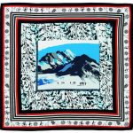 L’esposizione “Foulard delle montagne” è curata dal Museo Nazionale della Montagna di Torino, che per l’occasione presenta una settantina di pezzi delle proprie collezioni (che contano oltre 180 esemplari a tema montano), dagli anni ’20 ad oggi, tra cui i modelli di storiche griffe quali Chanel, Hermès, Prada, Givenchy, Gucci, Céline, Krizia, Ralph Lauren, Escada, Gabrielli, Aallard e Bogner, ma anche firme contemporanee come Étoile de Marie, Casali 71, Lola Paltinger, Milleneufcentquatrevingtquatre, Charlotte Hudders.