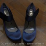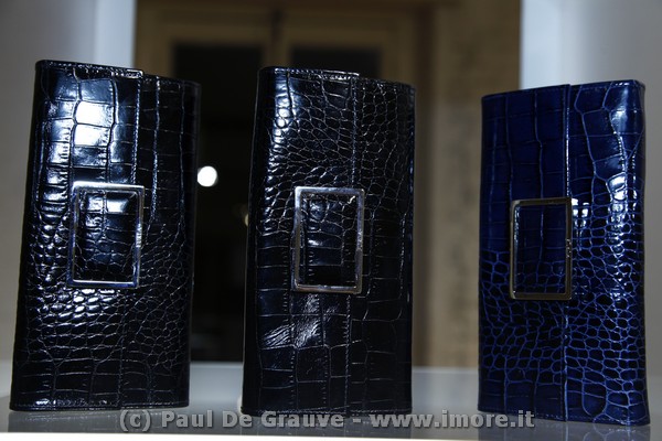 Tra loro il ventottenne Silvio Betterelli riesce con la sua collezione a raccontare un percorso di forme e di strutture attingendo ispirazione dall’arte e dal design. Scarpe e borse si arricchiscono di una nuova architettura contemporanea. Partendo da calzature classiche, tipicamente maschili, Betterelli inventa forme inaspettate: la francesina, traforata bicolore, si trasforma e diventa una ballerina con drappeggi scenici e pieghe di morbida nappa a inserti in vernice che offrono intriganti prospettive. Stesso fil rouge per le preziose decolleté, arricchite di rouches e tacchi esaltati da innovativi giochi di volume scultorei. Le borse pochettes e shopper riprendono anch’esse i dettagli delle scarpe e si impreziosiscono di pieghe ed anse che ricordano il Guggenheim di Bilbao su elementi in vernice più rigidi e strutturati.
