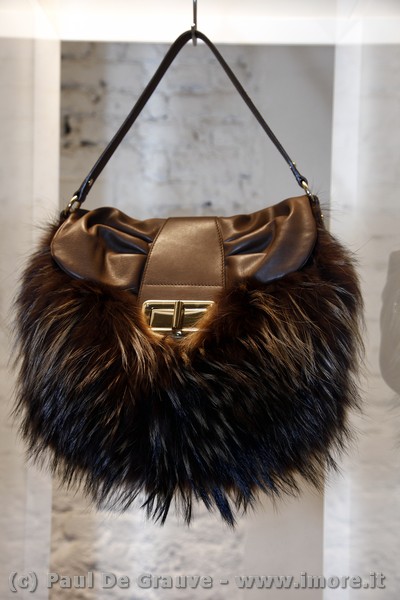 I colori giocano principalmente su tonalità che vanno dai marroni fino ai blu evocando la cromia delle pietre e dei minerali. Le tonalità scure riscoprono in questo modo un rigore dimenticato e il grigio diventa il nuovo nero Furla, vero leitmotiv della collezione. I pellami vanno dalle stampe cocco ingrassato tamponato sfumato a stampe macro, o a lucidi con aspetto più tecnico. I peli rasati e le pellicce a pelo lungo sfumato danno invece un aspetto lussuoso alla collezione. Come sempre Furla ci attrae per i particolari inediti, interessanti gli accessori con finitura oro e ottone anticato alle chiusure gioiello o gli importanti zip di metallo e i dettagli catene. In questo modo le borse assumono un look cittadino mantenendo però l’aspetto di design: ecco allora tascapani, bandoliere multifunzione o tracolle con nastri. Le pietre quali l’agata, la pietra di luna, il topazio o l’ambra rafforzano i mood di collezione.