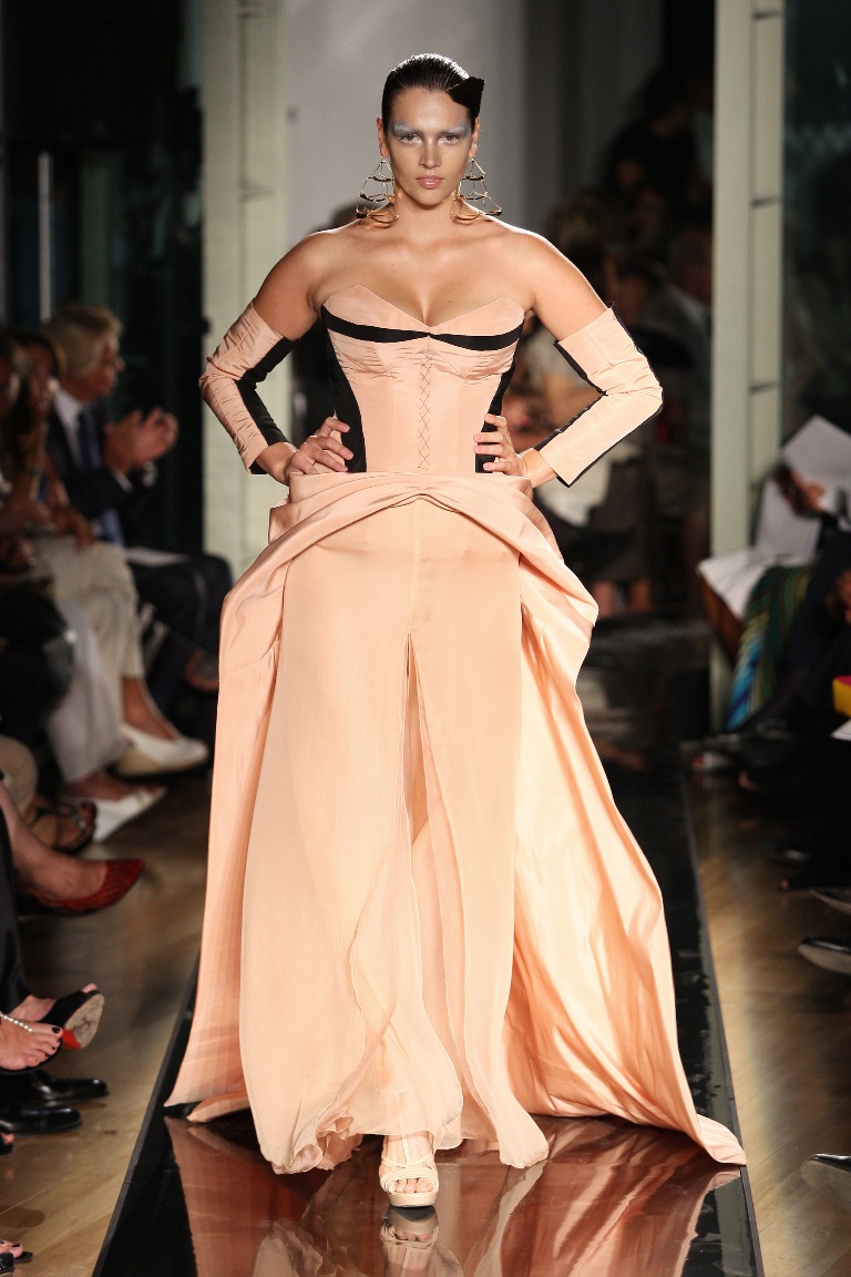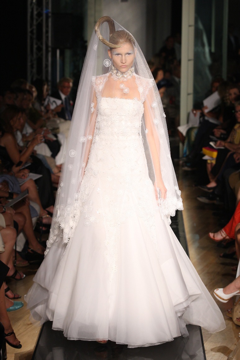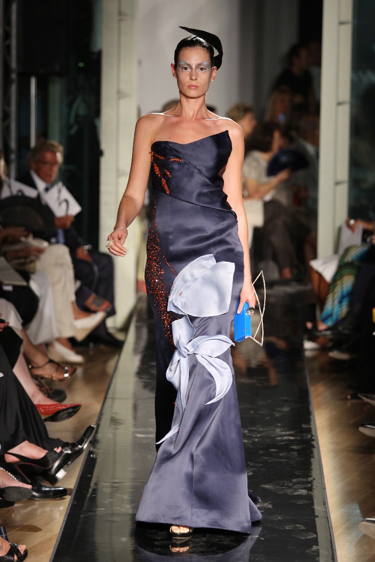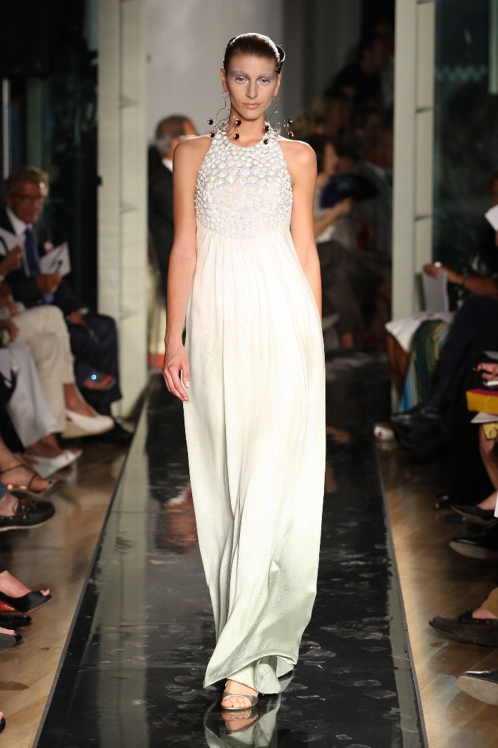 Lo spazio polifunzionale del museo MACRO Testaccio di Roma, ha ospitato giovedì 7 la presentazione della collezione di haute couture disegnata per l’Autunno-Inverno 2011/2012 da Guillermo Mariotto per Gattinoni. «Una dedica all’arte e agli artisti (“¦) – ha spiegato il direttore creativo della storica maison romana – Perché è proprio nei momenti di crisi che ci si rivolge allo spirito, alla religione, alla bellezza. E la creatività è appagante, gratificante, spesso persino compiacente». Le creazioni portate da Mariotto sulla passerella di AltaRoma, suggeriscono riflessioni estetiche contrastanti, raccontando diverse pulsioni che convivono nella vita e nell’arte. Alcuni abiti danno vita a costruzioni articolate, arricchite da volute e tornanti, linee esuberanti esasperano l’uso abituale delle stoffe e dei materiali, ricordando opere futuribili; altre creazioni come gli abiti-peplo, suggeriscono una riedizione fashion e contemporanea dell’arte classica e della statuaria antica. Immagini iconiche e visioni attinte dall’universo scultoreo di Tony Cragg, dai graffiti in 3D di Peeta, dalle foto e dagli ideogrammi di Roland Hicks, vogliono riaffermare l’importanza dell’arte della couture come espressione fondamentale dell’eccellenza italiana.