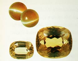 Da sempre a focalizzare su di sé l’attenzione è naturalmente l’occhio di gatto che mostra nel mezzo una sottile linea luminosa che ricorda le pupille del felino domestico, gemma impressionante per la sua vivacità, poiché tale linea pare spostarsi ad ogni cambiamento di posizione. Il primo ad intuire questo singolare fenomeno, di cui è responsabile l’inclusione di finissime fibre parallele (che si evidenziano tuttavia anche in qualunque altro minerale che inglobi minuscole fibre con la corretta disposizione), fu nel Settecento il gioielliere francese Antoine Caire-Morand.