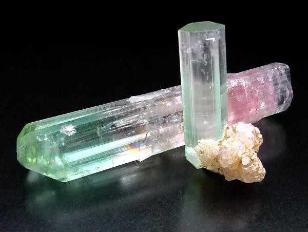 Anzi, le tormaline. Si tratta, infatti, di un ampio gruppo di specie mineralogiche appartenenti alla classe dei silicati: ricordiamo, fra le tante, le brune buergerite e dravite, la verde scura dravite cromifera, la nera dravite ferrifera, la verde-rosa elbaite, la bruno-verde-rosa liddicoatite, la viola siberite, l’azzurro-verde indicolite, la rosso porpora rubellite, le bruno-nere olenite ed uvite. Sono state rinvenute tormaline di tutti i colori, dovuti sia alla presenza di elementi nella formula chimica che a loro semplici tracce, e bisogna rilevare che pietre con tinte pressoché simili possono originare da composizioni differenti. L’elemento di base comune a tutte è però il boro. L’assenza di sfaldatura e la buona resa del taglio hanno decretato negli ultimi secoli un crescente successo per queste gemme che raggiunsero il continente europeo con una propria definita identità solo ai primi del 1700 a bordo di un vascello olandese carico di tè e spezie proveniente da Ceylon. I naturalisti dell’epoca appassionati di magnetismo si accorsero che, riscaldando o strofinando le nuove pietre con un panno di lana, esse da un’estremità attiravano pezzetti di carta, dall’altra li respingevano. Solo più tardi il singolare comportamento delle tormaline venne classificato come piroelettricità, tipico di quei cristalli la cui struttura reticolare si presenti priva di centro di simmetria e disponga di un asse polare.