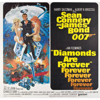 Cominciamo subito con un vero cult movie, vale a dire “Agente 007 – Una cascata di diamanti” (titolo originale “Diamonds are forever”), settimo episodio della saga di James Bond, con Sean Connery, Lois Maxwell, Charles Gray, diretto da Guy Hamilton nel 1971. Il film inizia con Bond alla ricerca del suo solito nemico Ernst Stavo Blofeld (capo della Spectre), per vendicarsi della morte della moglie Tracy, e prosegue con l’agente segreto nei panni di un contrabbandiere sulle tracce del responsabile di un colossale traffico illegale di diamanti. Curioso è che i diamanti servirebbero a costruire un misterioso laser, ma in realtà… Lasciamo in sospeso la trama, caso mai qualcuno dovesse ancora vedere questo intrigante film.