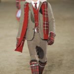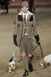 Blazer di tweed e gilet obbligatori, che fanno intravedere camicie bianche o celesti, sono abbinati a pantaloni in fustagno o velluto alla zuava e sono coperti da giacconi trapuntati di tessuto tecnico e nylon, ai piedi stivali di cuoio tirato a lucido. I colori sono quelli della terra, delle rocce, degli alberi: dal marrone terra di Siena bruciata al sabbia, dall’ecrù al color daino, dal cachi al terracotta, poi verde bosco, grigio cenere e qualche tocco di rosso fuoco.