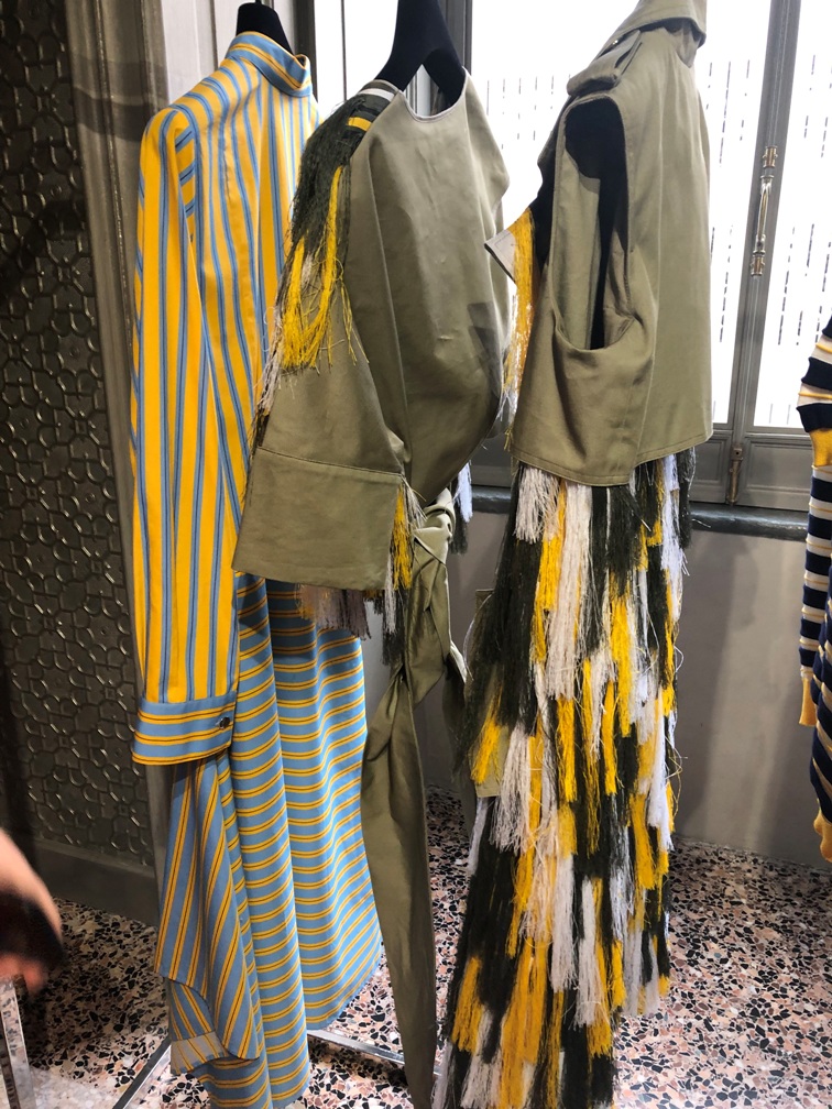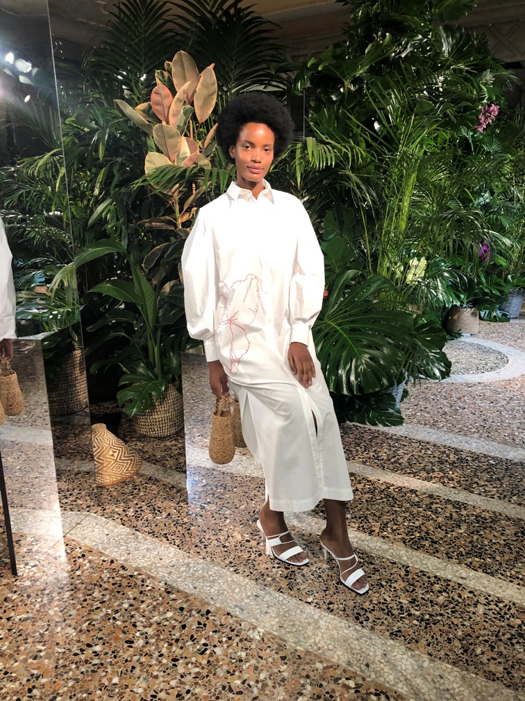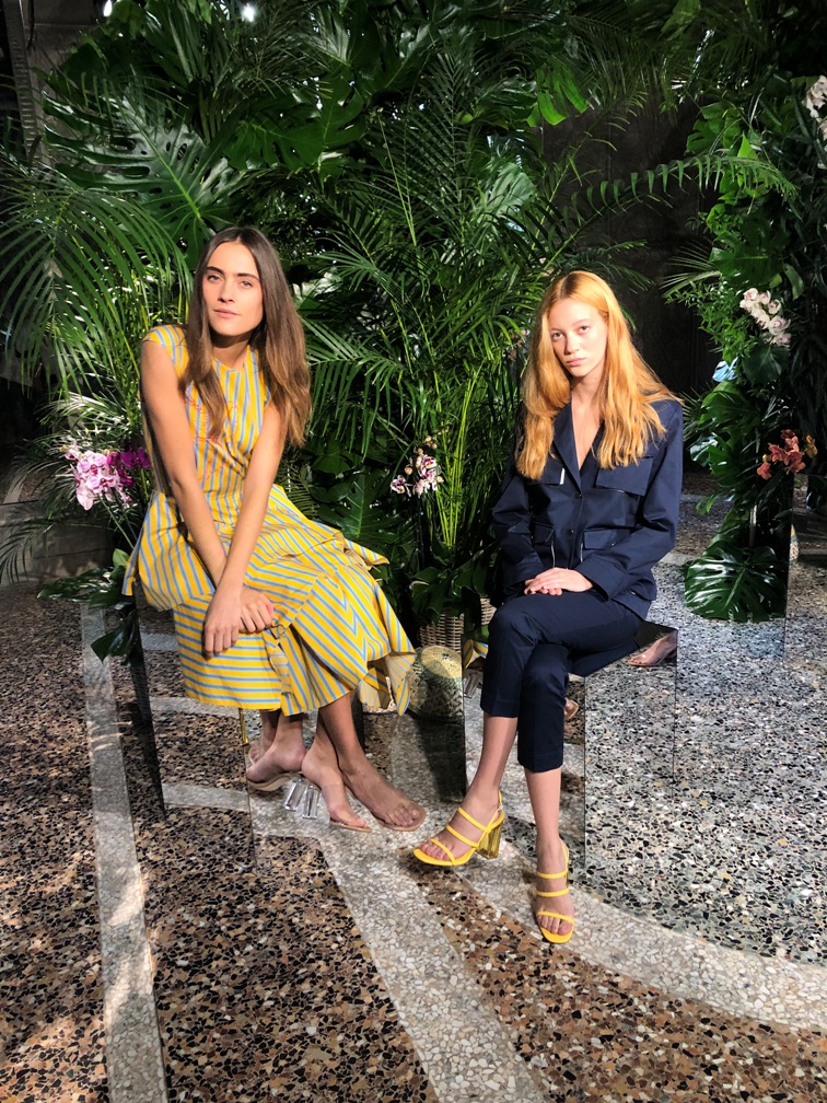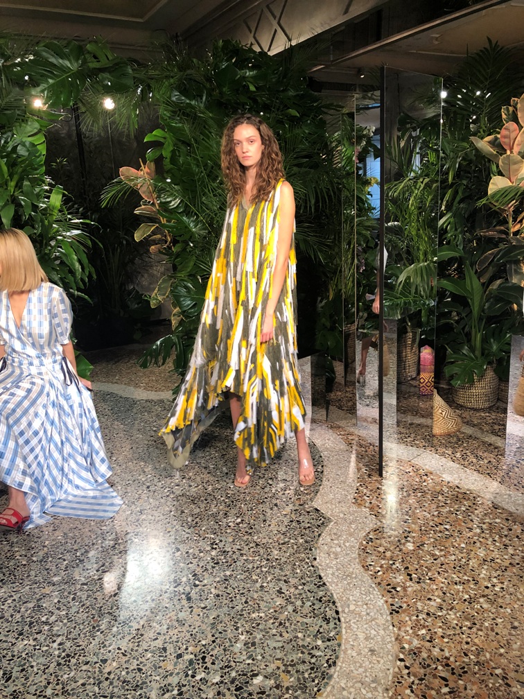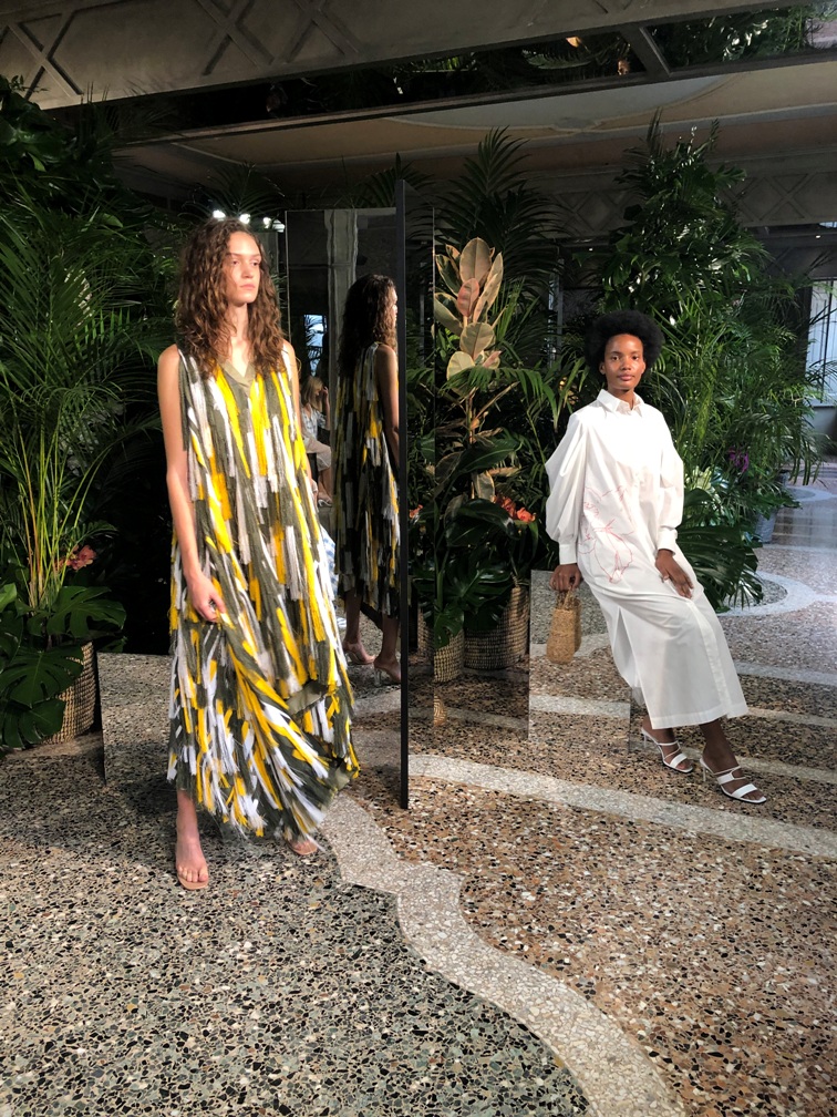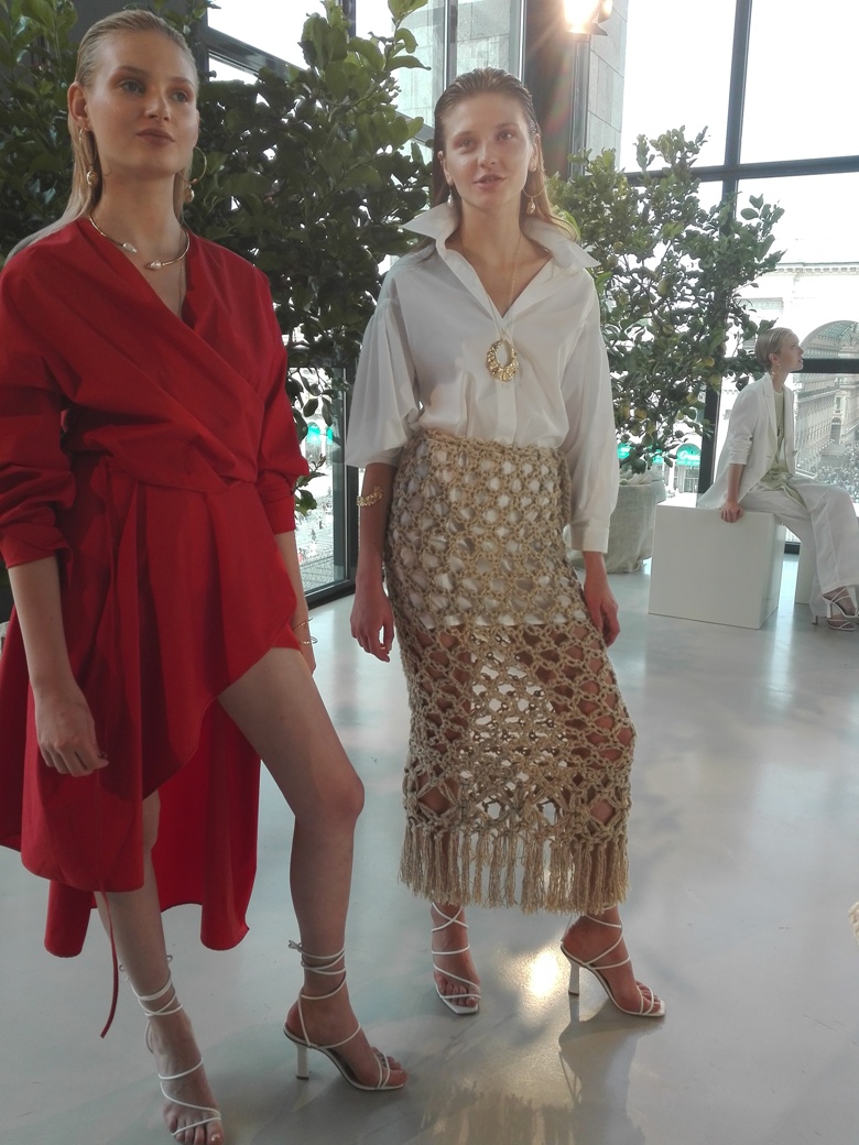 Il mediterraneo accoglie gli ospiti di Gentryportofino, nel Museo del Novecento trasformato in una limonaia intensamente profumata -gli alberi sono cariche di frutti-. Tutto richiama le coste della Liguria lì dove Portofino, il piccolo borgo di pescatori famoso nel mondo, si affaccia su una baia con le sue case, i suoi negozi esclusivi, i ristoranti dove gustare specialità di pesce, il Castello in alto, la piazzetta da cui ammirare le case colorate che si riflettono nel mare. In Liguria affonda le sue radici il marchio produttore -agli albori- di cachemire; poi si sposta nel mantovano quando il brand è rilevato dalla Olmar and Mirta di Giambattista Tirelli alla fine 2011. Dopo diversi anni di consolidamento, si presenta a Milano per la stagione A/I 2019-20 (cfr. Autunno chiama , si presenta ora per la sua seconda prova, P/E 2020 a MFW.