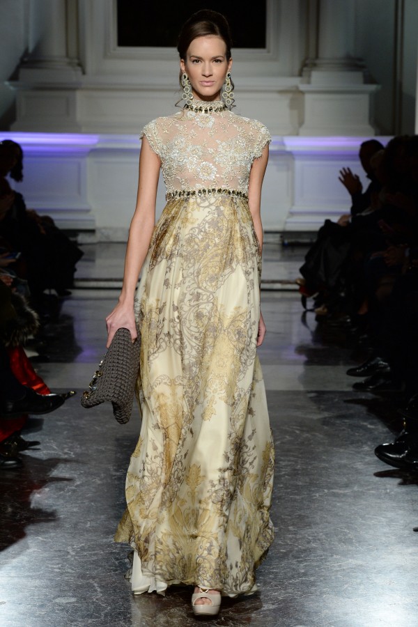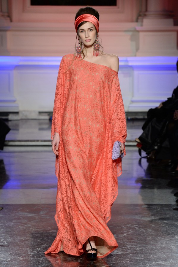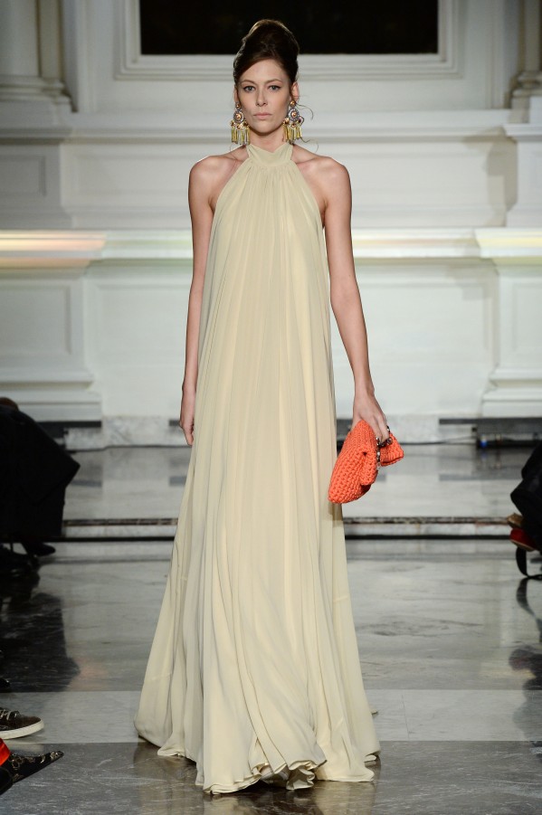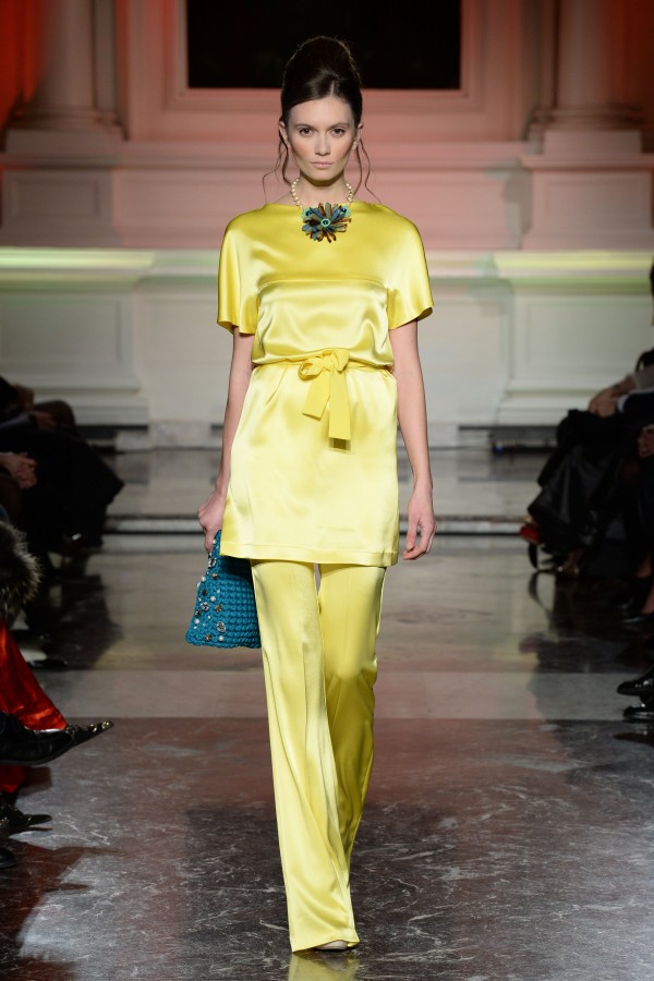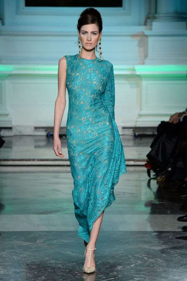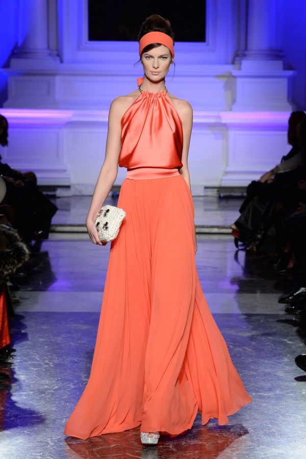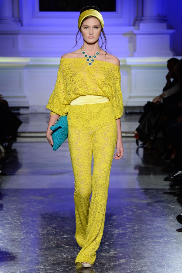 «L’ispirazione è arrivata così, per caso, come arrivano tutte le idee che mi conquistano. Ascoltavo Andrea Bocelli che cantava “I Found My Love in Portofino”. Mi ha emozionato! Ho immaginato una sfilata ambientata nella piazzetta di Portofino, con quella luce limpida, quei colori caldi, avvolgenti, il profumo del mare…La mia collezione per la prossima primavera sarà così: calda ed avvolgente. Dedicata alle “mie” “donne”» con queste parole Giada Curti descrive l’ispirazione stilistica alla base della sue proposte Haute Couture per la Primavera/Estate 2014. I colori della bella stagione: azzurro, giallo, corallo e aragosta, zafferano dorato, sabbia e bianco definiscono tessuti che vanno dallo chiffon al cady, dal satin alle sete stampate, fino alla grazia e alla ricercatezza del pizzo che caratterizza diverse creazioni.