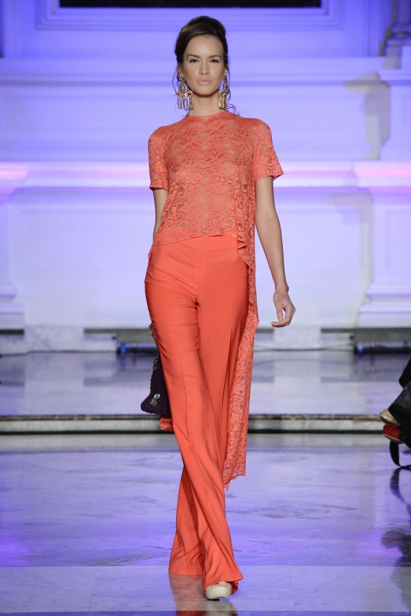 La sera del 26 gennaio in passerella presso la Residenza di Ripetta, hotel di lusso nel cuore della Capitale, nell’ambito di AltaRoma, hanno sfilato i Pantaloni Gioiello Portofino, creazioni dedicate allo splendido borgo marinaro ligure che ha anche assicurato il suo patrocinio all’evento. Pantaloni al polpaccio tempestati di ricami e pietre per accentuare il lato più glamour della femminilità, pezzi unici da indossare in barca, per un cocktail o di pomeriggio per prendere un aperitivo in piazzetta. Giada Curti ha pensato, insomma, a soluzioni comode e giovani, non solo a vestire la sera, pur mantenendosi nell’Olimpo dorato dell’Alta Moda e del capo realizzato su misura. Per la prima volta, sulla passerella della stilista, hanno sfilato anche abiti di prét couture.