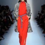 I maxi coat sono decisi di taglio militare sono arricchiti da spalline ricamate o da applicazioni che simulano le decorazioni militari; il principe di Galles si arricchisce di una eccessiva cascata ramages di cristalli; il velluto a coste del cappotto fa bella mostra e completa il tailleur pantalone dello stesso tessuto. I cappotti meno rigidi e i parka cappotti sono strizzati in vita da cinture sottili. Le maniche dei cappotti o dei parka sono arricchite da bordi di pellicce più o meno voluminose e di diverso colore a simulare le militari insegne di grado; nel cappotto rose sono in nastrino rosso. La pelliccia completa i colli o fodera all’interno il parka; solo qualche stola a completare le mise notturne.
