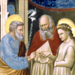Ancora l’anello come pegno d’amore coniugale è protagonista dell’eccezionale “Sposalizio della Vergine” affrescato dal sommo Giotto (1305 circa) nella Cappella degli Scrovegni a Padova. Questo ci richiama un altro incantevole “Sposalizio della Vergine” opera di Raffaello (1504), in cui lo sposo prescelto Giuseppe tiene in una mano un anello e nell’altra una verga fiorita (segno del favore di Maria per lui, secondo una celebre leggenda).