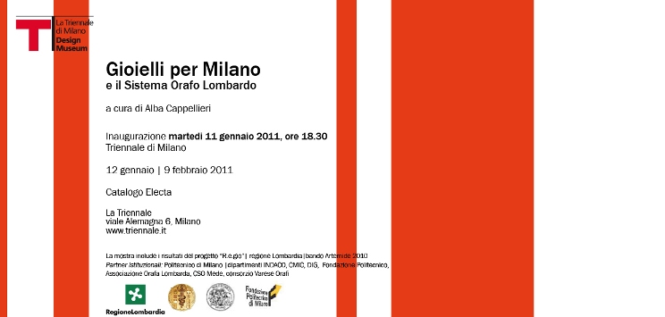 Una idea che diventa una mostra: “Gioielli per Milano”, curata da Alba Cappellieri professore di design del gioiello al Politecnico e in programma alla Triennale Design Museum del capoluogo lombardo dall’ 11 Gennaio – 6 Febbraio 2011.