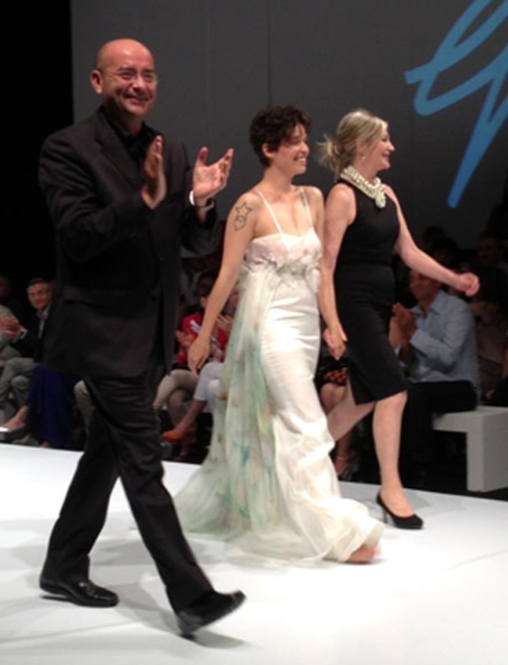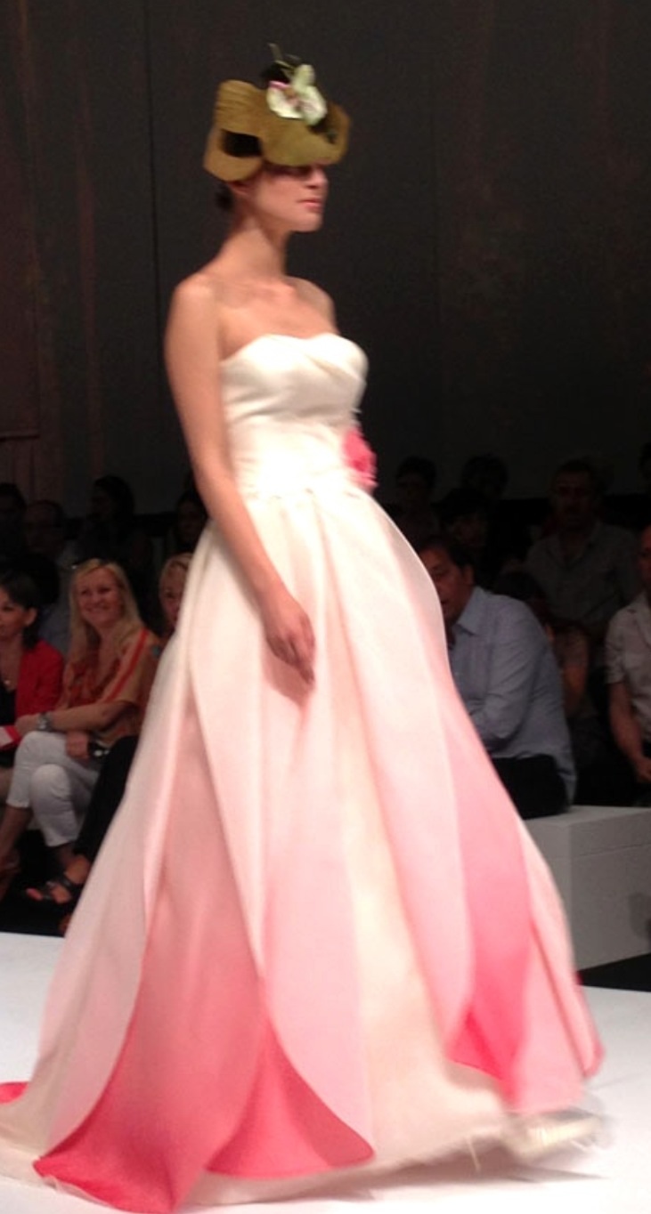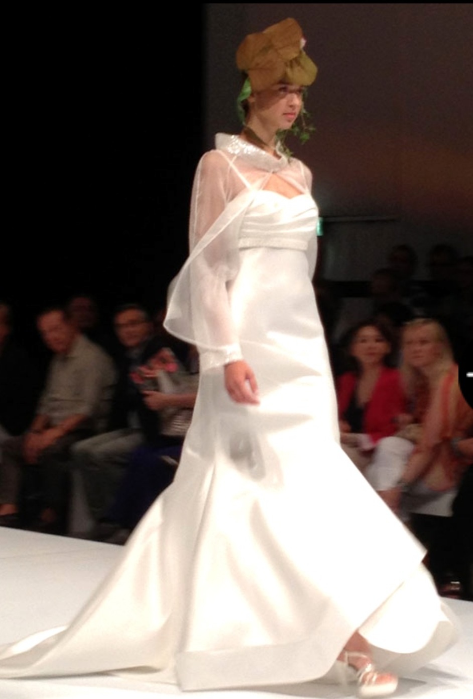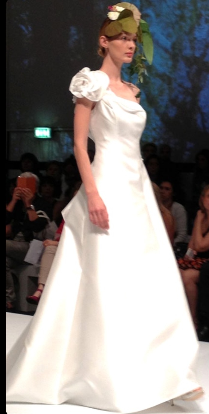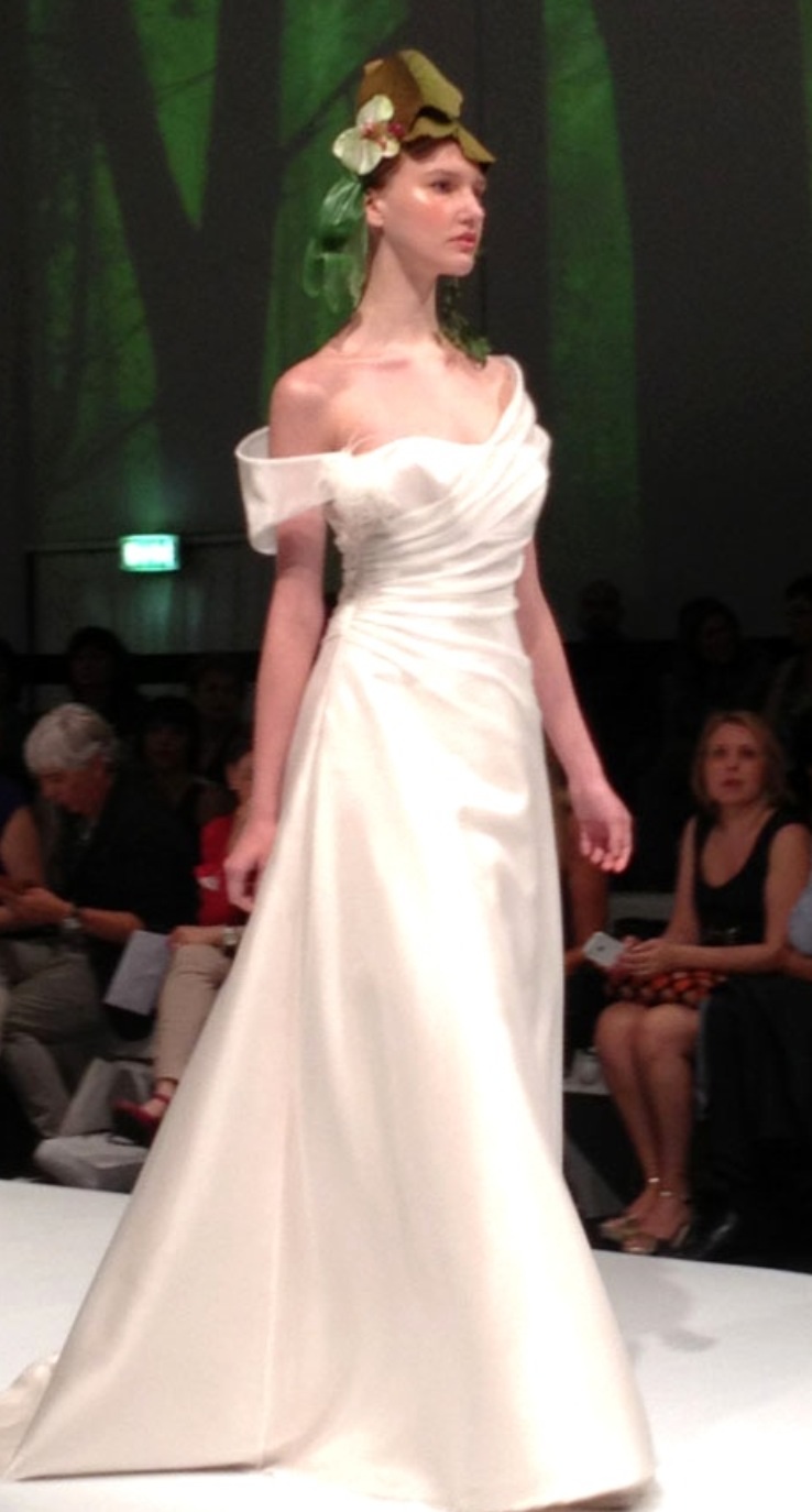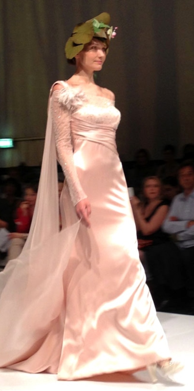 Indossando un simpatico cerchietto verde e marrone in stile fatine –come a personificare le spose di tutte le stagioni- sembrano arrivare dal mondo dei boschi: romantiche sì, ma determinate. Donne appassionate e sognatrici che sanno però ciò che vogliono per essere felici, questo sembra essere il messaggio conclusivo trasmesso anche dal monologo corporeo dell’artista sulla passerella a ritmo di musica a fine sfilata.