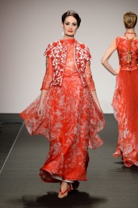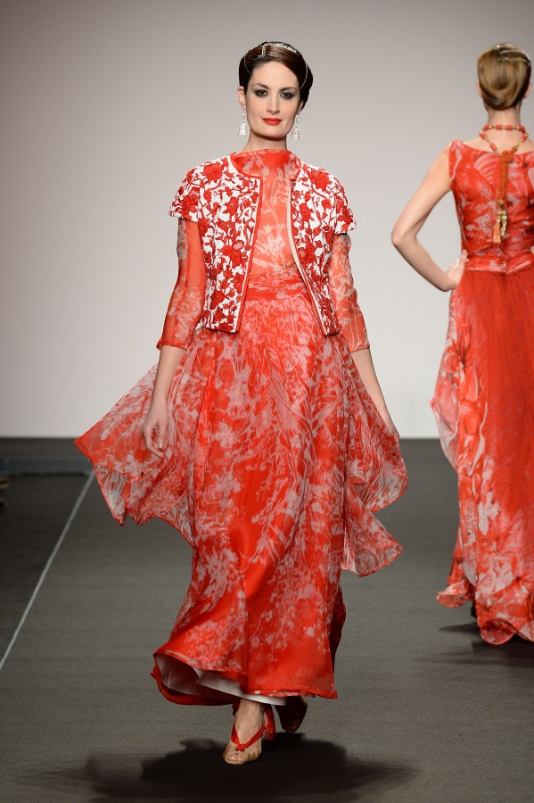 La scelta dell’ispirazione orientale -oriente ha sempre affascinato gli stilisti da Poiret a Fortuny fino ai designer di ultima generazione- le consente inoltre di fare sfoggio delle sue capacità non solo sartoriali, ma anche culturali.