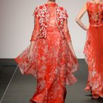 Come sempre, quella di Raffella Curiel, una collezione ricca per il numero di capi presentati; coerente, con una chiara ispirazione orientale non solo nelle prime uscite, e negli abiti da sera, ma in quasi tutti gli outfit, magari nel taglio delle spalle, nell’uso dell’obi, negli accessori, ecc.