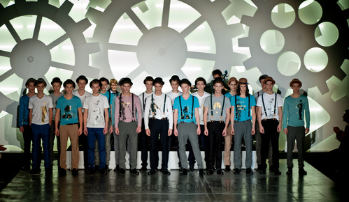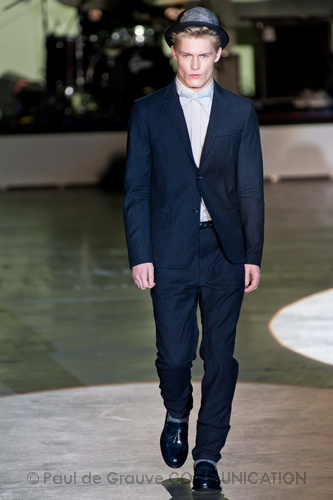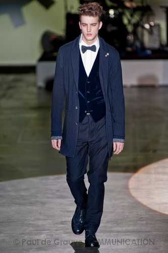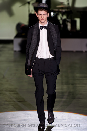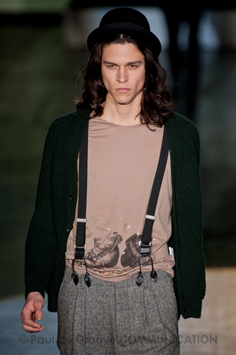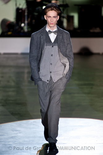 Prendendo spunto dalla vecchia pellicola per impostare la collezione, lo stilista Paolo Gerani fa indossare a tutti i modelli un cappello a coppola e in molti dei suoi abbinamenti spicca il papillon; i primi abiti sono inoltre caratterizzati da morbidi pantaloni sorretti da bretelle. Ma il film è più che altro un pretesto per giocare con la bombetta, la sostanza della collezione si trova nelle lavorazioni dei tessuti e nei loro nuovi mix.