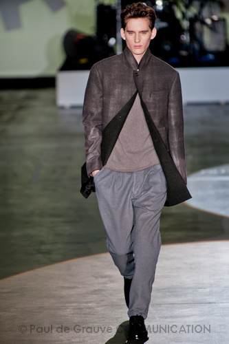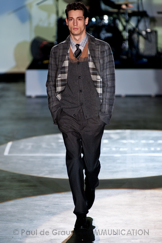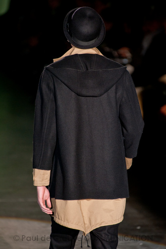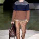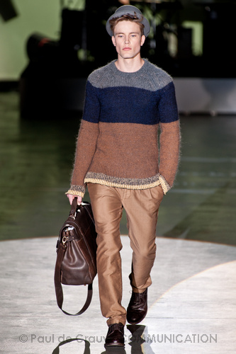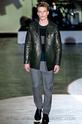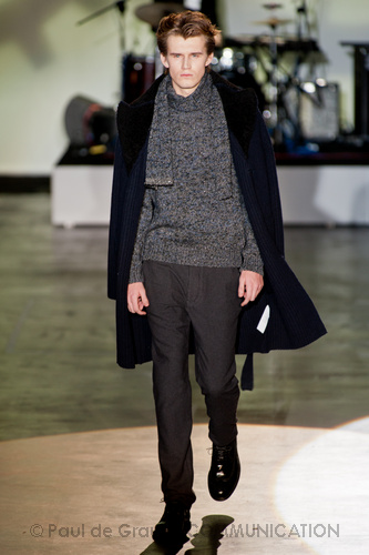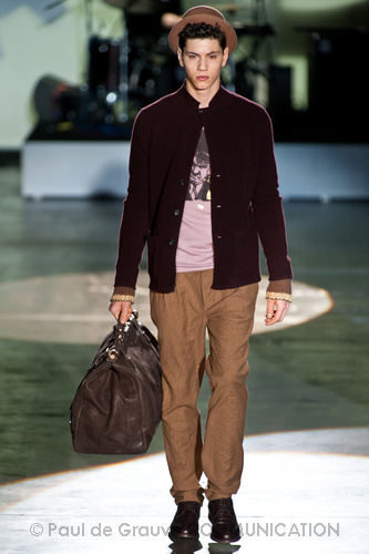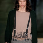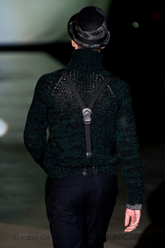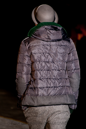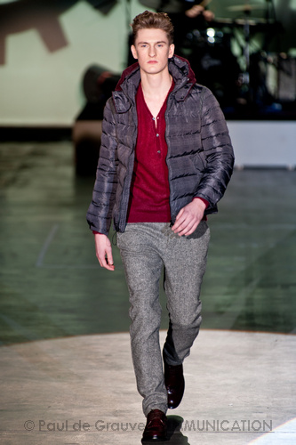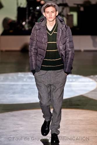 Come soprabiti sfilano insieme capi più classici, come i cappotti grigi o il paltò con gli alamari, giubbini in pelle anni ’70, parka in maglia e tessuto, golfoni di lana, giacche in pelle con revers in panno, moderni piumini corti. Segno che questo brand, nato per un target più giovane, può in realtà adattarsi a vari stili ed età.