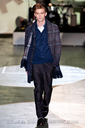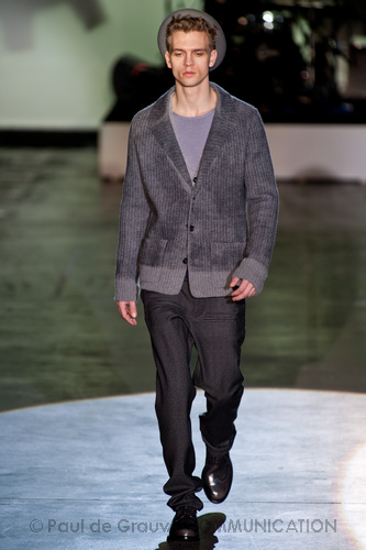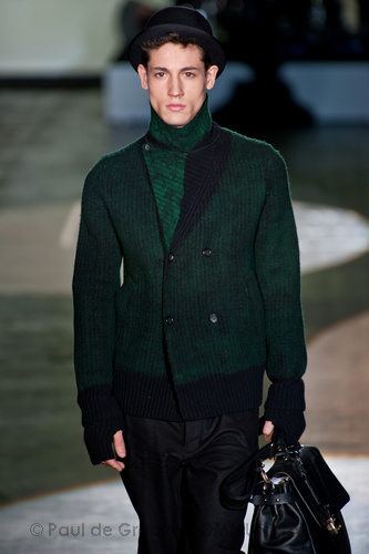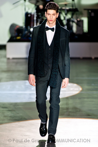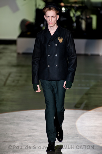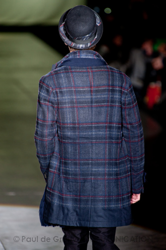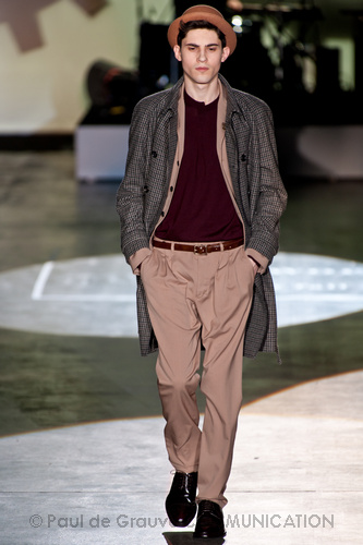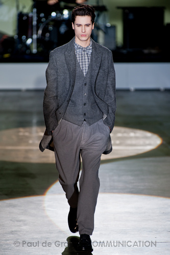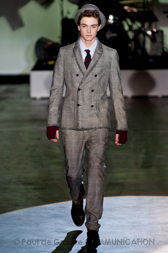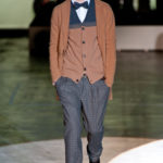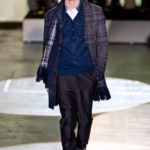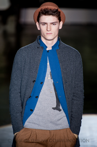 Non c’è un vero tema dominante nella scanzonata prudenza di Iceberg: Charlie Chaplin, British style, artigianalità, qualche accenno pop tipico del marchio. Un mix glamour tradotto in un linguaggio contemporaneo. Il risultato è un giovane uomo impeccabile ma al tempo stesso stropicciato, che indossa giacche di maglia di lana e cappotti check che sembrano stampati e invece sono cuciti con materiali diversi tessuti insieme.