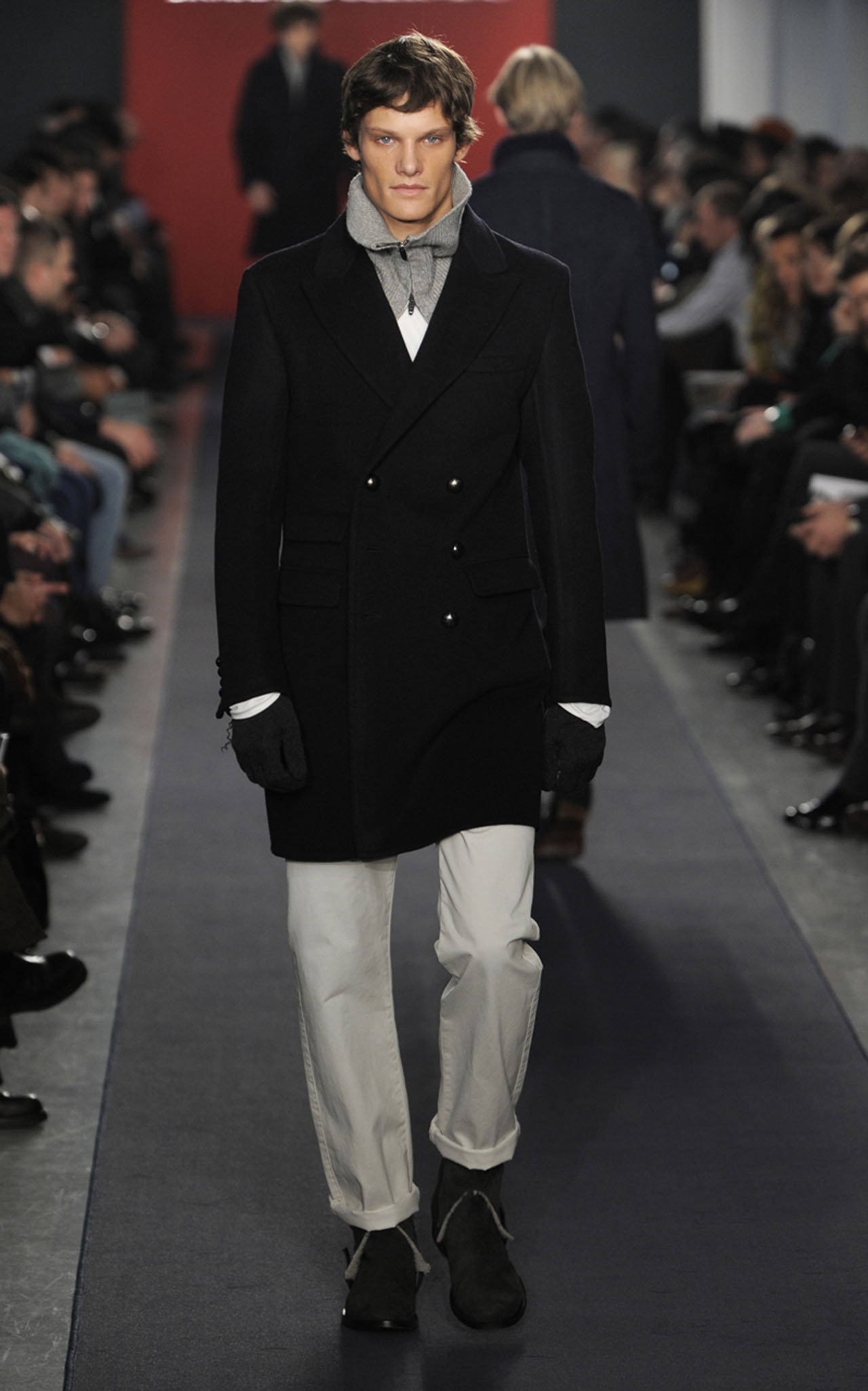 Il cuore della collezione sono i capotti e le giacche di lana double, con dettagli militari, e bottoni dall’aria vagamente vintage.