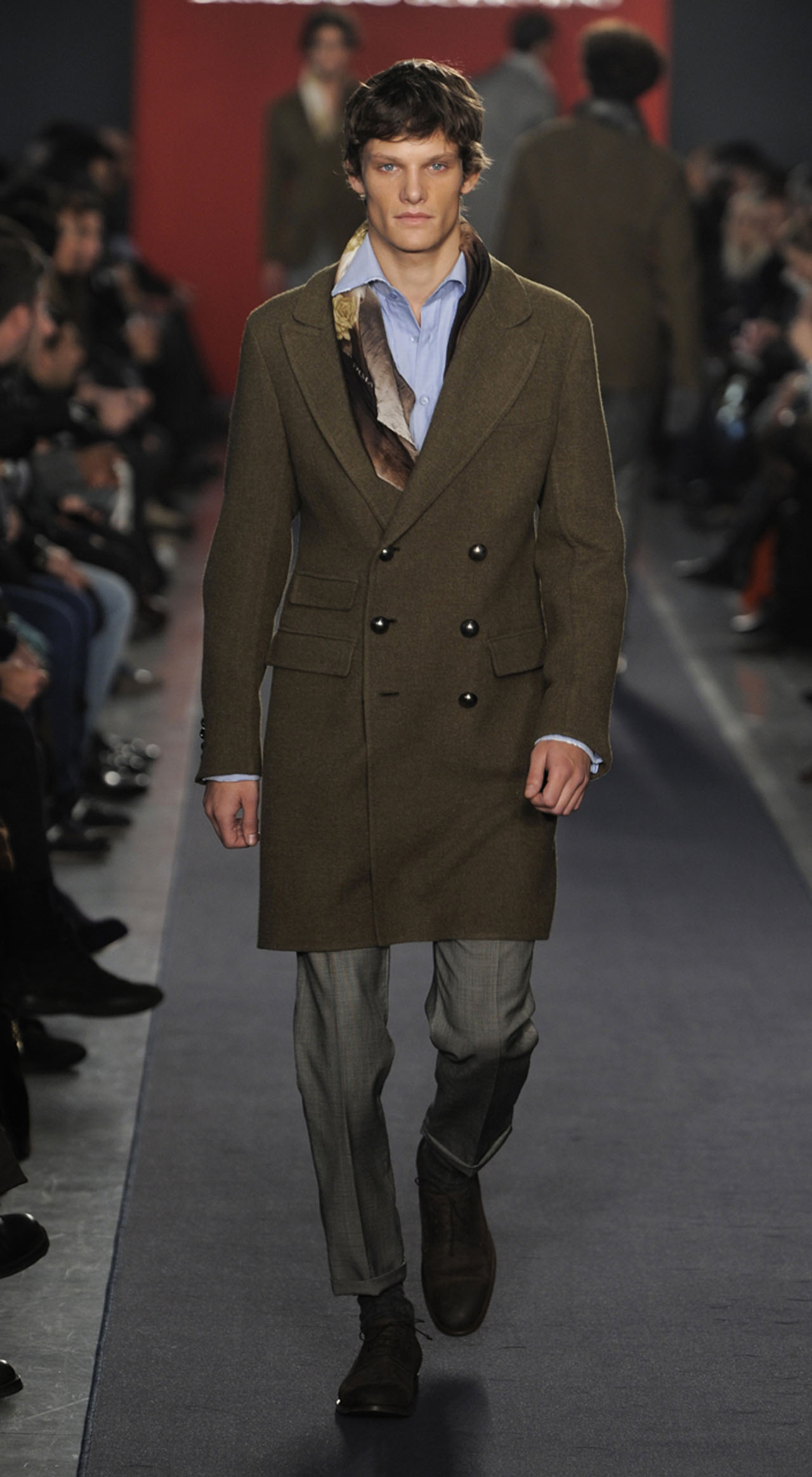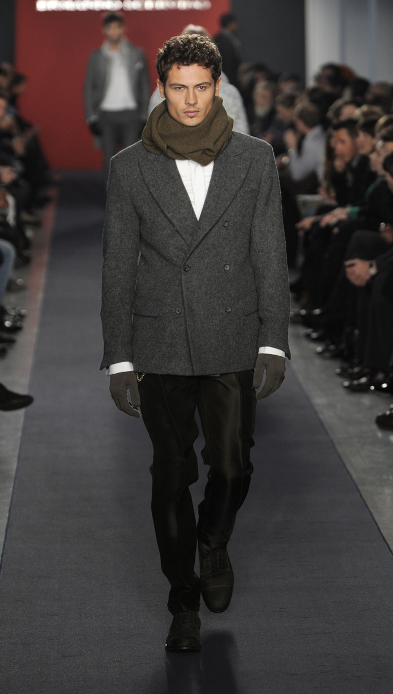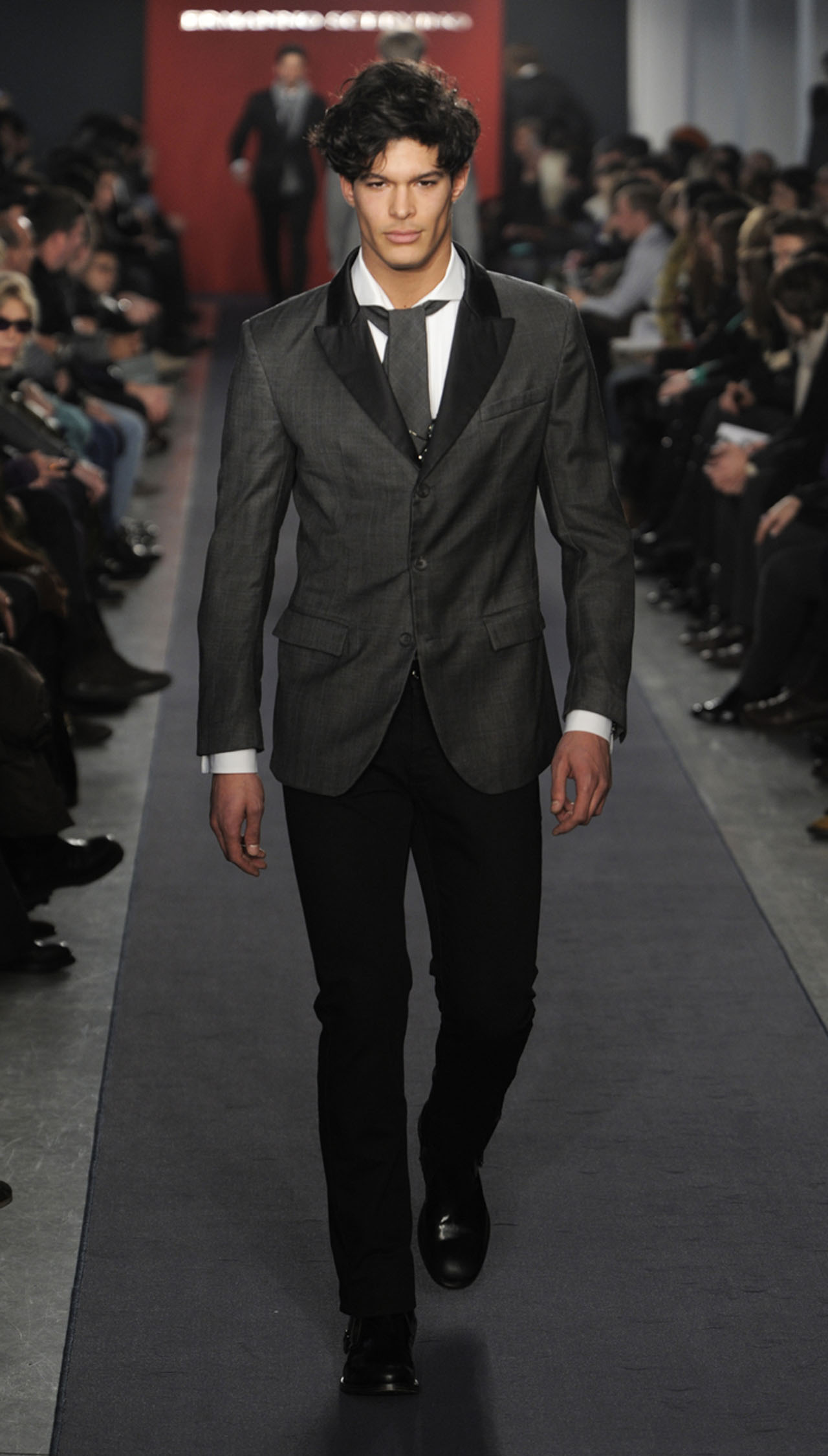 Ermanno Scervino costruisce una bella collezione che interpreta in chiave moderna il guardaroba classico maschile. “”Una collezione creativa e portabile” l’ha definita lo stilista, e prosegue: “Attinge ai classici ma li rivoluziona con interventi e lavorazioni che li rendono estremamente moderni” . Così avviene sulle classiche drapperie – micro pied-de-poule, principe di Galles, grisaglia, occhio di pernice – che sono rese contemporanee da trattamenti all’aerografo.