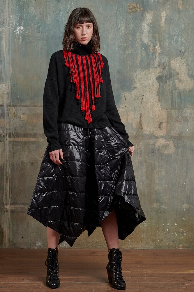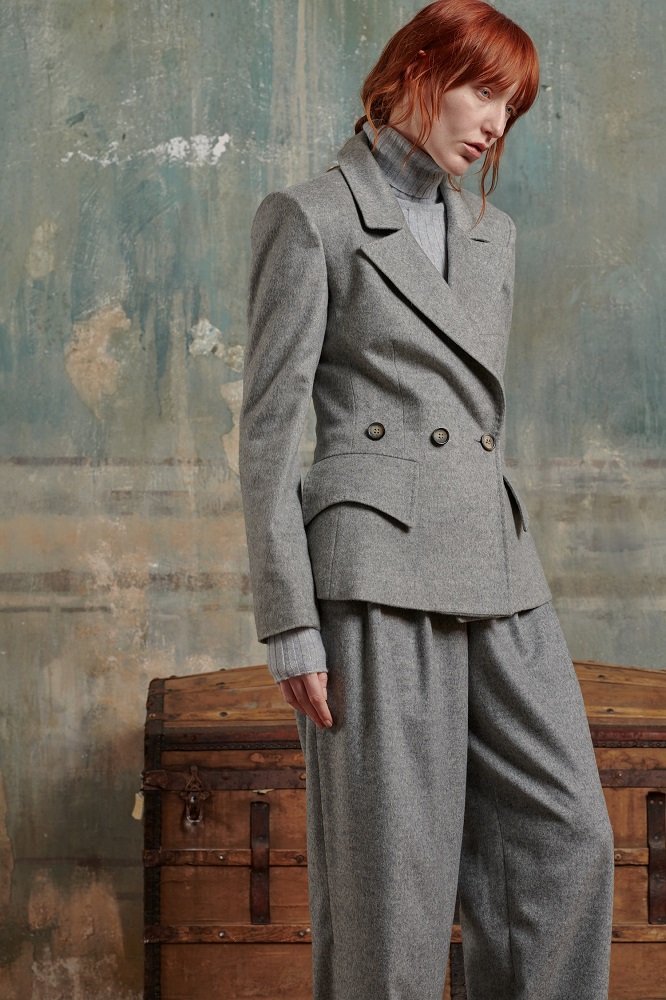La collezione A/I 2020-21 di Cashmere Flakes presentato al Museo della Permanente durante la MFW di febbraio 2020, è costituita da cinque capsule frutto del lavoro creativo di cinque giovani talenti internazionali: il giapponese Cinoh, Dawei (Parigi, Bejing), l’italiano Marco Rambaldi, vincitore del Who’s Next 2017 e del Green Carpet Award 2018, Savoar Fer (Parigi, Zurigo), Victoria/Tomas (Parigi). che hanno dato prova di saper utilizzare con scioltezza l’imbottitura per creare gonne voluminose o tute molto femminili dalla linea aderente, giacche o caldi cappotti; ma anche i tessuti derivate dai fiocchi di cashmer per eleganti capispalle, classici tailleur, e maglieria dallo stile giovane e moderna.