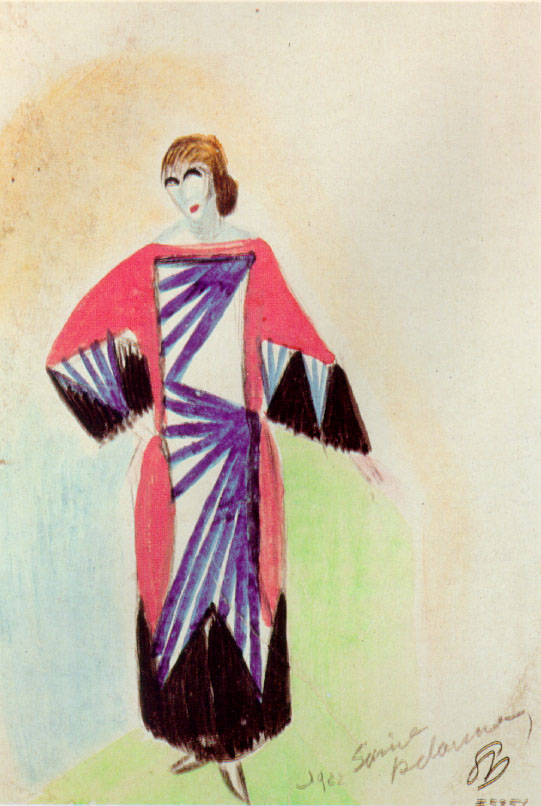 Per quanto riguarda l’abito femminile le indicazioni saranno posteriori. Non possiamo dimenticare l’iniziale e dichiarato “disprezzo della donna” da parte dei futuristi, che spiega l’oblio del riferimento femminile nelle prime dichiarazioni. Nel “Manifesto della Moda femminile futurista”, firmato da Volt alias Vincenzo Fani Ciotti nel 1920, si legge che la moda deve abbandonare “le false insegne della distinzione e della sobrietà”; bisogna spezzare “tutti i freni che le (alla moda) impediscono di correre, trasvolando sulle vertigini dentate dell’assurdo.La moda femminile non sarà mai abbastanza stravagante. Anche qui, noi cominceremo con l’abolire la simmetria. Faremo dei décolleté a zig-zag, maniche diverse l’una dall’altra, scarpe di forma colore e altezza differenti“.E si affacciano alla nostra memoria le creazioni a noi contemporanee: gli abiti con maniche diverse di colore e di foggia o le scarpe con la sinistra diversa dalla destra.