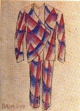 – “Variabili, per mezzo dei modificanti (applicazioni di stoffa, di ampiezza, spessori, disegni e colori diversi) da disporre quando si voglia e dove si voglia, su qualsiasi punto del vestito, mediante bottoni pneumatici. Ognuno può così inventare ad ogni momento un nuovo vestito. Il modificante sarà prepotente, urtante, stonante, decisivo, guerresco, ecc. Il cappello futurista sarà asimmetrico e di colori aggressivi e festosi. Le scarpe futuriste saranno dinamiche, diverse l’una dall’altra, per forma e per colore, atte a prendere allegramente a calci tutti i neutralisti. Sarà brutalmente esclusa l’unione del giallo col nero. Si pensa e si agisce come si veste. Poiché la neutralità è la sintesi di tutti i passatismi, noi futuristi sbandieriamo oggi questi vestiti antineutrali, cioè festosamente bellicosi. Soltanto i podagrosi ci disapproveranno. Tutta la gioventù italiana riconoscerà in noi, che li portiamo, le sue viventi bandiere futuriste per la nostra grande guerra, necessaria, urgente.