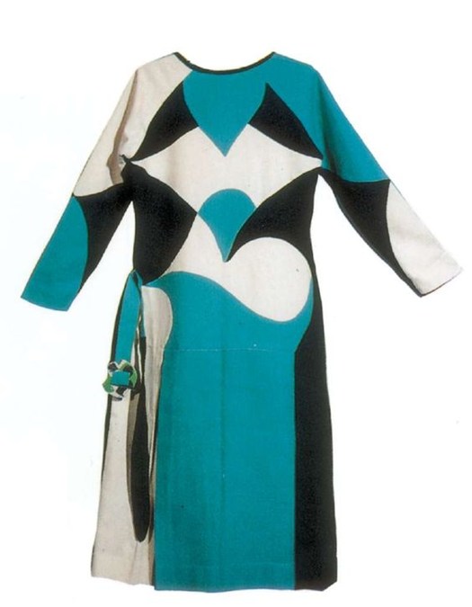 Quindi immaginiamo che anche l’abito femminile debba essere, come si legge nel manifesto di Balla “dinamico, aggressivo, urtante, volitivo, violento, volante, agilizzante, gioioso, illuminante, fosforescente, semplice e comodo, di breve durata, igienico, variabile”. Tutto ciò non è altro che la trasposizione dei principi del futurismo sulla porzione dell’universo rappresentato dall’abbigliamento.