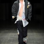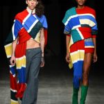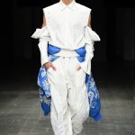 A volerli definire e descrivere sinteticamente il loro lavoro, di Vanotti diciamo: designer razionale anti romantico, predilige le linee geometriche, chiare e decise, asciutte, ma sa costruire abiti femminili, eleganti sobri, impeccabili da un punto di vista sartoriale. Per Angel Chen sottolineamo la presenza di uno spirito giovanile quasi sfrenato che diventa, nelle sue collezioni, innovazione, ma rischia di sconfinare nella stravaganza là dove manca una punta di ironia in grado di smorzarne l’enfasi; la sua espressività si esprime nell’uso del colore che talvolta ha tonalità eccessive. Due personalità molto diverse, ambedue però hanno scelto di portare in passerella capi femminili e maschili e di adottare alcuni elementi dell’abbigliamento hip hop giovanile -specialmente nella linea dei pantaloni-, e di virare talvolta verso una modalità genderless (stessa idea per i due sessi, ma non lo stesso concetto di abito, non si tratta neppure di un abito unisex) come ad esempio nella collezione di Angel Chen in quei capi maschile/femminile che sfilano assieme richiamandosi a vicenda: una serie di sciarpe colorate –bianco, celeste, rosso- che costruiscono per lei completamente un abito corto, per lui il sopra di pantalone grigio.