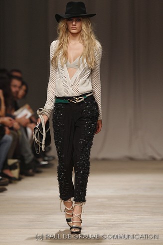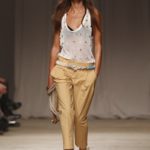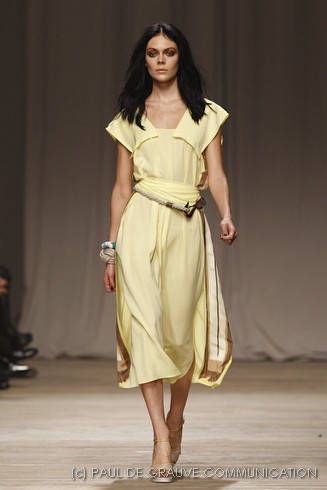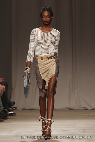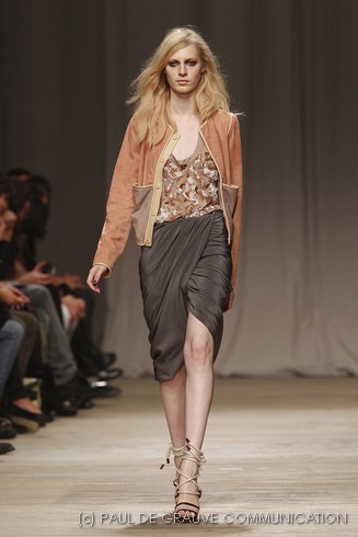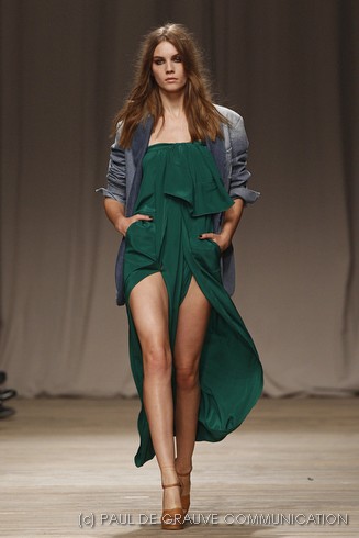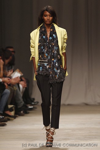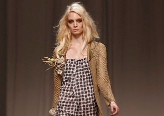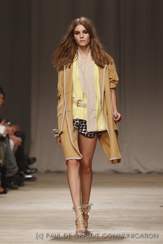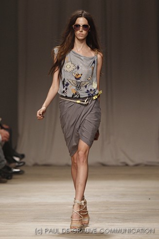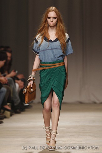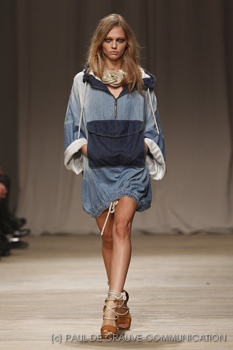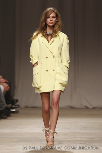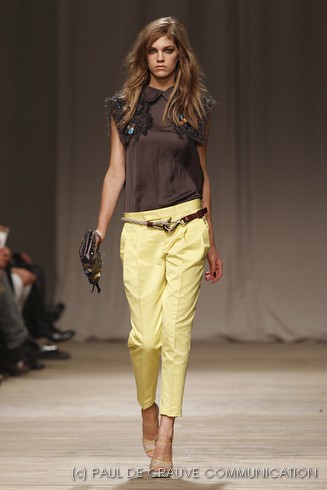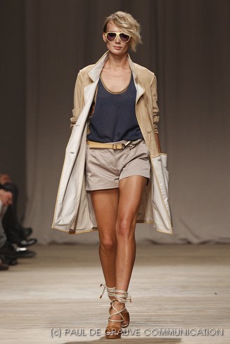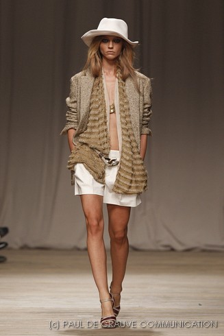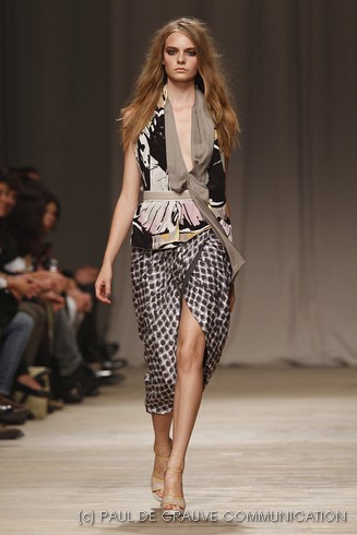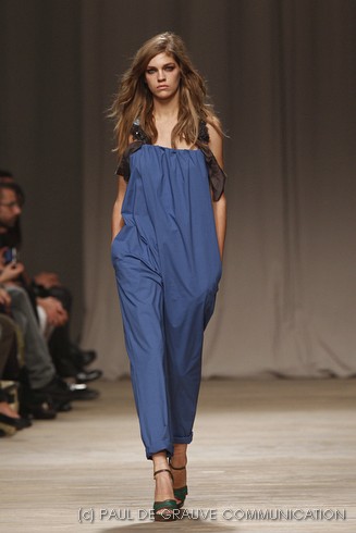 La sfilata di Iceberg si apre sulle note di Imagine, nella versione più intensa di Antony and the Johnsons. La scelta musicale è quella giusta per creare un’atmosfera rilassata, quasi sospesa. C’è voglia di tranquillità nella p\e 2011 di Paolo Gerani, stilista della maison: i capi sono morbidi, le linee scivolate. Protagonista il balazer oversize, anche nella fantasia Principe di Galles, rubato all’armadio di lui. Si porta su gonne che sembrano parei, corte al ginocchio, sui pantaloni con le pinces o su bermuda anni ’50.