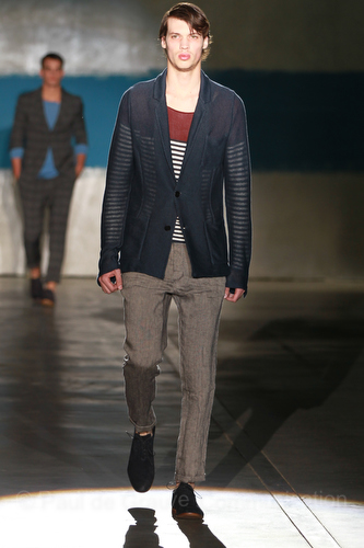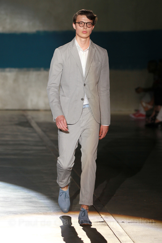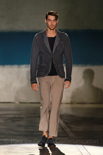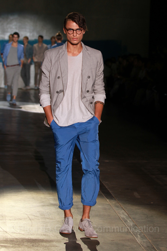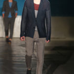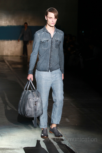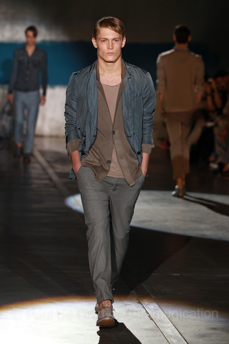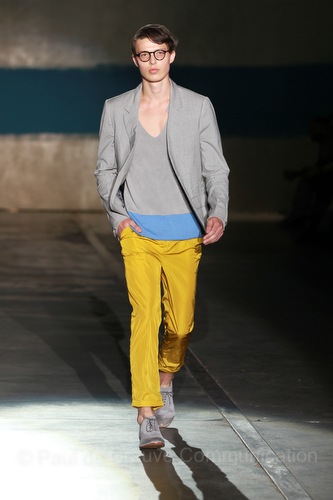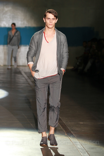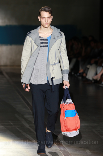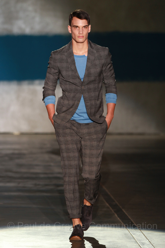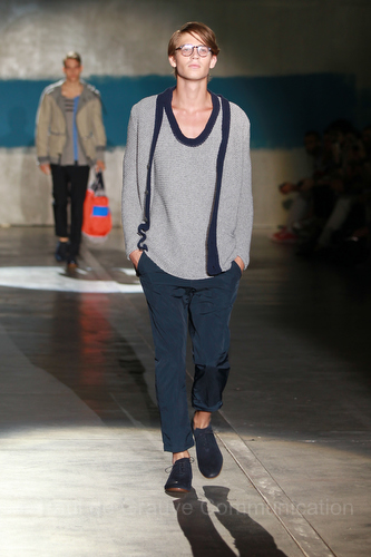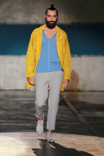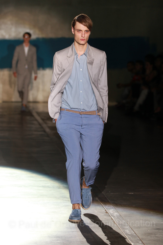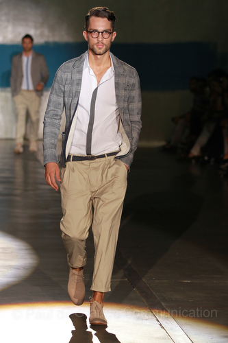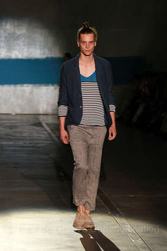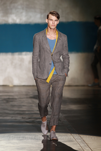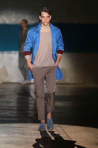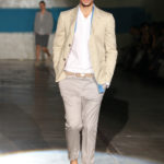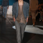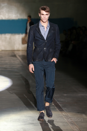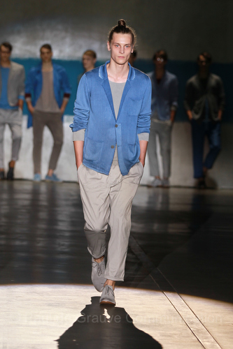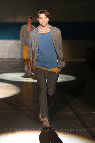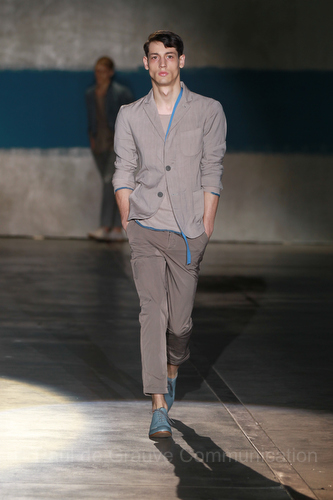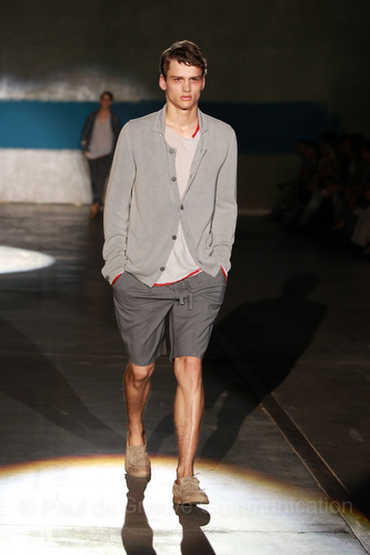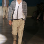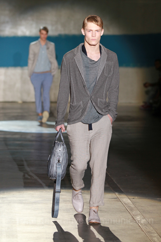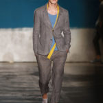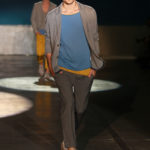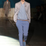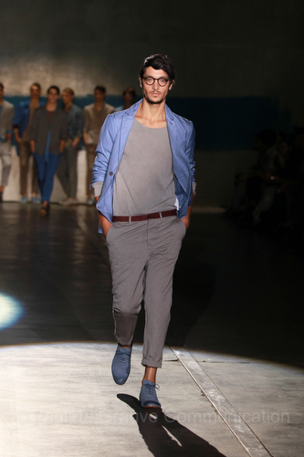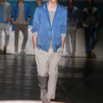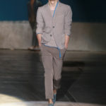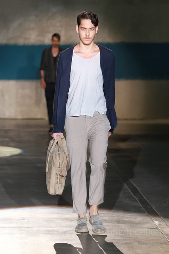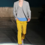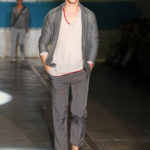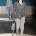 Sui pantaloni in fresco di lana, rigorosamente arrotolati alla caviglia, si porta, in alternativa alla giacca, il cardigan o la maglia tagliata come un blazer. In passerella sfilano uomini dallo stile trasandato, ma solo in apparenza, perché qui nulla è lasciato veramente al caso e lo stile la fa da padrone. Gli accostamenti sono ben studiati, i dettagli (immancabili gli occhiali di corno o la maxi tracolla) mai trascurati. Anche i tessuti sono ricercati: i capi in seta e cachemire, si alternano ai tessuti tecnici, ma c’è spazio anche per il lino e il cotone.