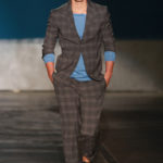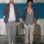 Stile metropolitano e anima dandy si mescolano bene nei completi dal look un po’ stropicciato e dai colori freddi: prevalgono le nuances del grigio, del blu, dell’azzurro polveroso, accostati con eleganza ai toni più accesi dell’ocra, dell’arancio e del bluette.