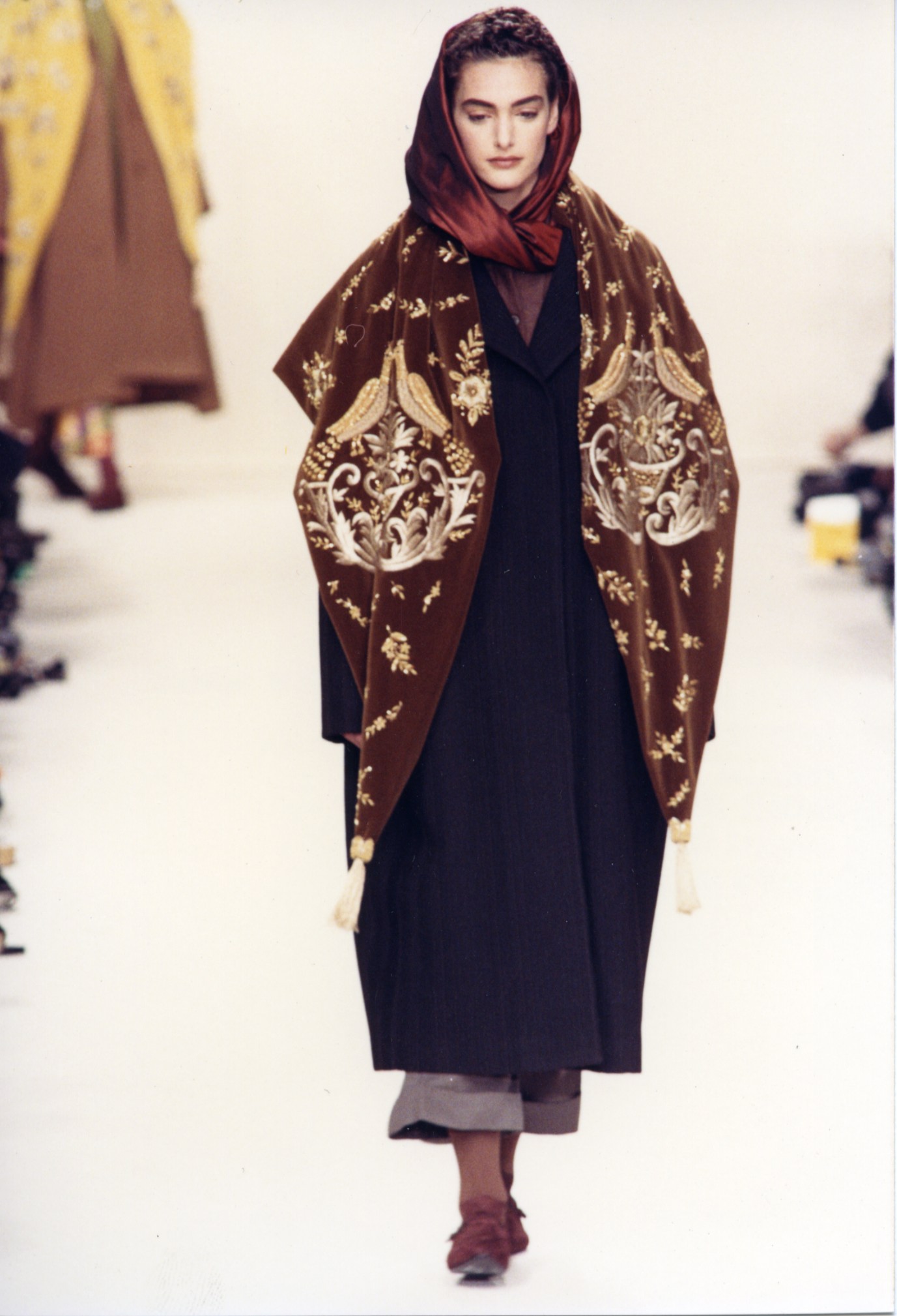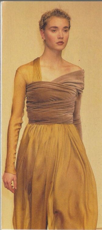Romeo Gigli è andato controcorrente. Compare sulla scena in un momento in cui la silhouette femminile è disegnata, grazie all’ampiezza delle spalle fortemente rinforzate, con una rigidità tutta architettonica ed è celebrata attraverso una allure aggressiva: è l’immagine, rimasta come retaggio di modernità, della donna manager -ancora oggi gli stilisti definiscono la donna che vogliono vestire come grintosa e determinata anche se siamo lontano dagli eccessi degli anni’80. In opposizione Gigli risulta una voce poetica e romantica che si esprime con la silhouette ondulata, ad uovo, le spalle arrotondate i colori indefiniti e con una ispirazione, poi mantenuta e accentuata, dell’immagine femminile attinta da opera d’arte, i preraffaelliti, l’arte romana e specialmente l’arte musiva bizantina di Ravenna sua terra di origine successivamente, a cui in tempi più vicini a noi si ispireranno altri stilisti: per citarne alcuni Lagerfeld per la collezione Pre-Fall 2010/2011 intitolata Paris–Byzance; Dolce&Gabbana per la collezione autunno/inverno 2013-14, chiamata “Mosaico sartoriale” e ispirata ai mosaici di Monreale; Valentino che per ben due stagioni trova ispirazione nella corte dell’imperatrice Teodora così come è rappresentata a San Vitale a Ravenna.