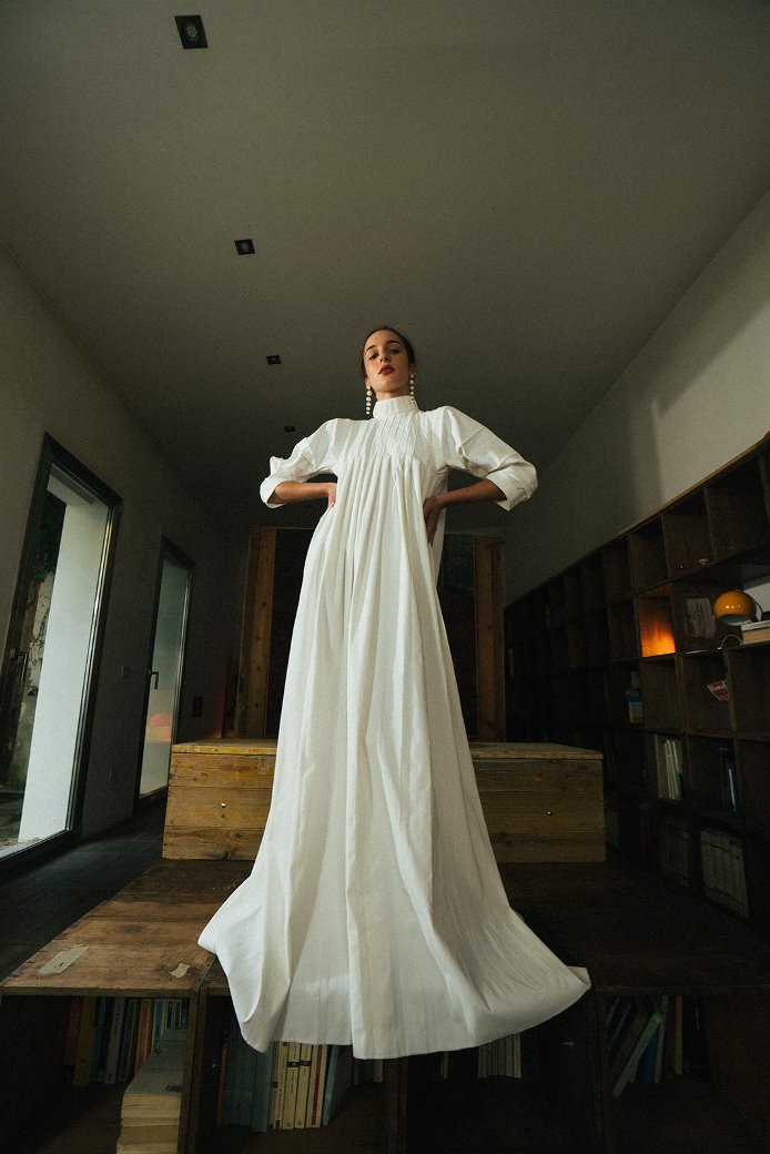 Le nove giovani designer di IED Firenze hanno disegnato, prototipato e cucito abiti con colli a scialle e gonne dalla forma a uovo –in tessuti Landini– interpretando nei loro codici creativi contemporanei il mondo sognate e innovativo dello stilista di Castel Bolognese. Ognuna delle studentesse ha colto un aspetto del lavoro e della visione dello stilista. Giusy Franconeri ne sottolinea l’ispirazione profonda e artistica “ Per Gigli dietro ogni capo realizzato non c’è solo stoffa, bensì un pensiero e un’anima. Così ho cercato di ricreare nel mio abito un concetto di arte senza tempo, per dare il giusto valore a ciò che si indossa, e non creare capi usa e getta”. Serena Calabrese fissa l’attenzione su “Drappeggi, controrotazioni, fusioni tra occidente e oriente, tra passato e presente” e riconosce che svolto il lavoro con le sue colleghe ha rappresentato” Un percorso di ricerca, sviluppo e realizzazione sartoriale, conclusosi con uno shooting professionale che ha dato la giusta importanza visiva ad un progetto interdisciplinare”. Roberta Melani a sua volta commenta come sia trattato di “..un’esperienza unica che ci ha permesso di passare dalla progettazione al suo confezionamento sartoriale per poi misurarsi con lo Styling” . Infatti la collezione che le giovani designer hanno creato, hanno voluto presentarla in un video – occupandosi dello styling e shooting – che ha ripercorso il mondo di Gigli attraverso sfocature, movimento e poesia.