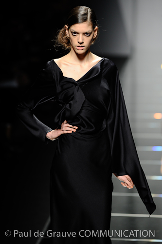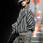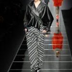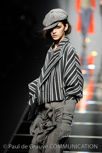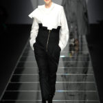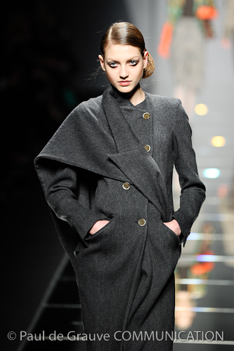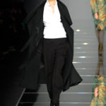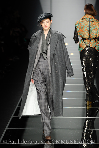 La gangster ribelle avanza a passo sicuro e disinvolto avvolta con lunghi capispalla con manica a kimono o abbottonature asimmetriche e cappelli che suggeriscono l’ambiente tipicamente francese. Nei capi si alternano linee semplici e dritte a quelle più importanti e volumetriche. I pantaloni scuri a vita alta abbinati ad una camicia bianca danno un tocco maschile al capo nel quale si riconosce una nuova e moderna femminilità. L’abito da sera è drappeggiato e fonde il suo tocco chic con quello pratico del cappotto indossato al di sopra di esso.