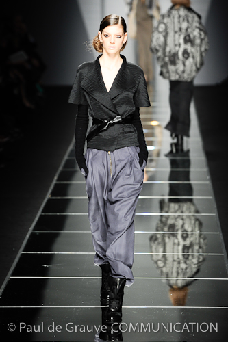 A sfilare in passerella è lo spirito del romanzo di Herni Charrière, meglio conosciuto come Papillon, sullo sfondo di una affascinante Parigi anni Trenta. La storia ha dato l’ispirazione agli stilisti Catherine Brickhill e Marcus Constable che rappresentano le vicende autobiografiche del celebre condannato attraverso l’immagine di una giovane e femminile gangster dallo spirito libero e ribelle proprio come quello instancabile di Papilon. Il messaggio di Haute è quello di uno spirito che non si arrende e che è disposto a tutto anche a far buon viso ad un cattivo gioco pur di sopravvivere ed essere libero.