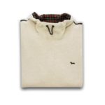 La collezione reinterpreta l’abbigliamento delle guide alpine degli anni ’50 portata al massimo confort ad esempio con la messa a punto di un lambswool mano cachemire soffice e leggero per realizzare una maglieria bottonata, con trecce e disegni aran tipici dei maglioni irlandesi.