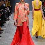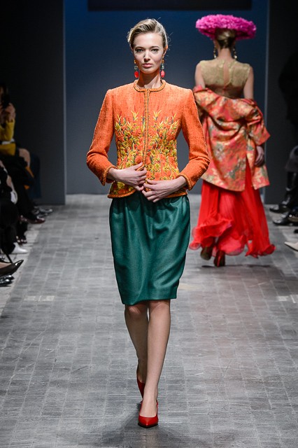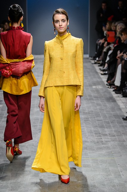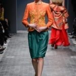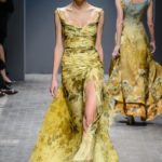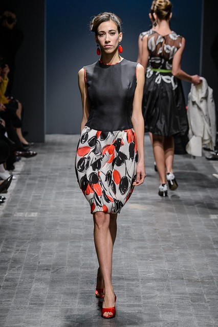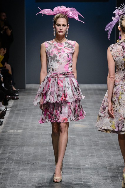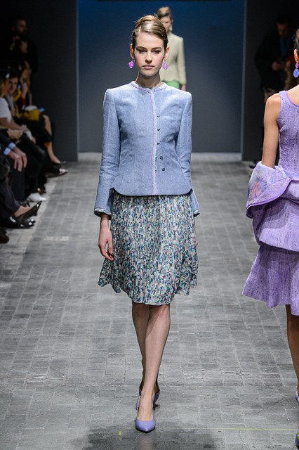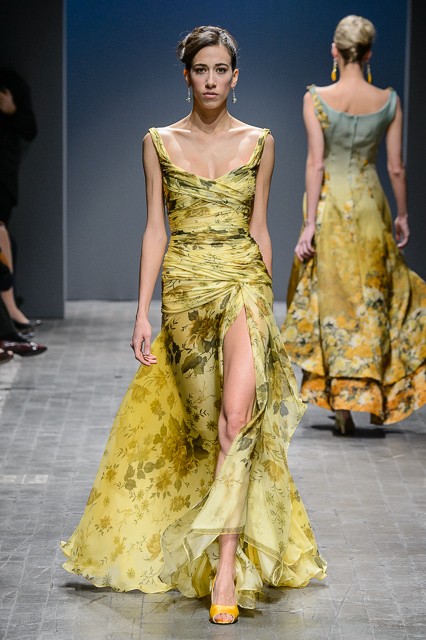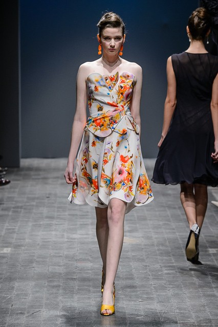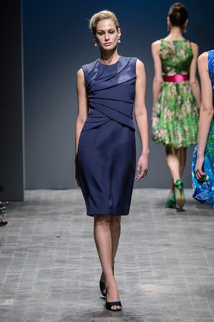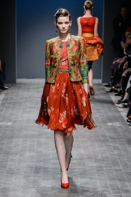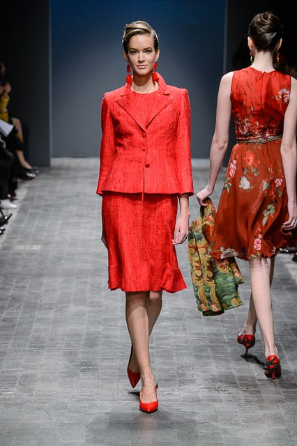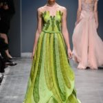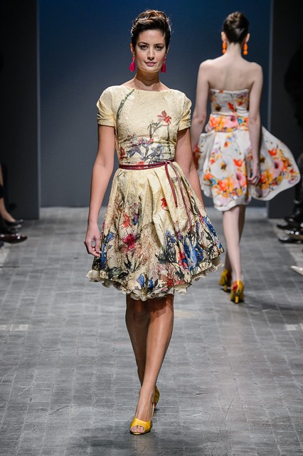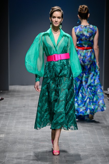 Fonte di ispirazione della collezione è questa volta la natura, i fiori di un giardino, gli evangelici gigli che non filano eppure hanno una veste tanto splendente, che neanche Salomone, con tutta la sua gloria, ha mai saputo eguagliare. Lei stessa ci dice che oltre ad un messaggio di bellezza ci vuole trasmettere un messaggio di speranza perché la natura, un giardino -con il suo eterno movimento del seme che diventa pianta e poi mette su le foglie che ci regalano infinite gamme di verde e poi si adorna di fiori che spandono sulla terra una miriade di colori- è un messaggio di vita. Una collezione primaverile in tutti i sensi, anche più giovanile di altre precedenti che la stilista milanese ci ha regalato, forse per i colori, forse le forme.