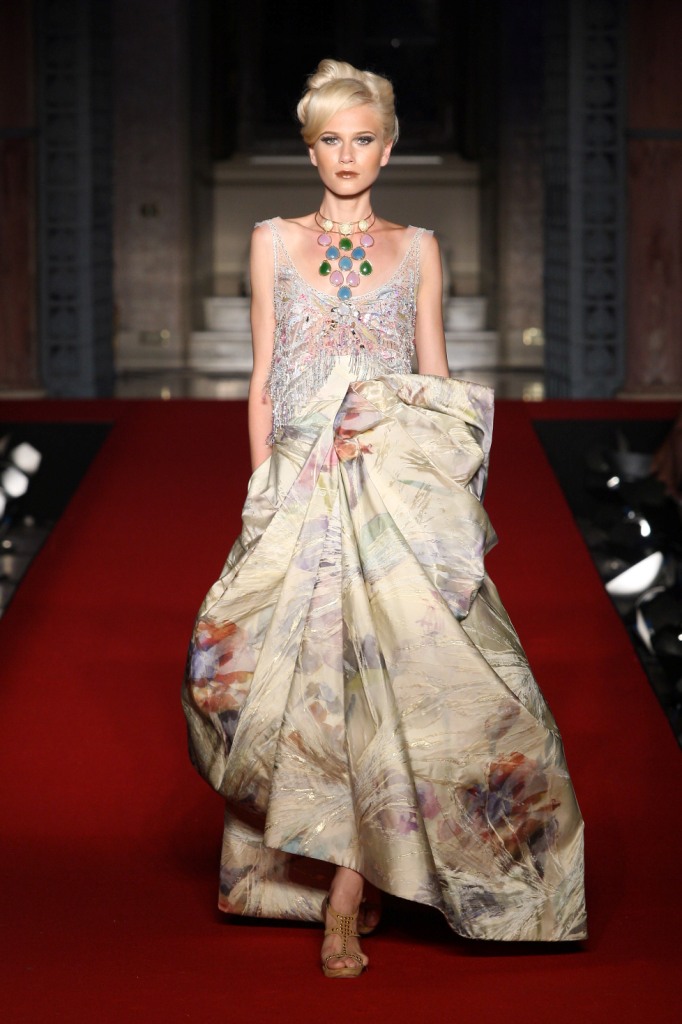 Nel suggestivo giardino pensile del Casino dell’Aurora di Palazzo Pallavicini a Roma, è stata presentata la collezione Fall/Winter 2010/2011 della maison Gattinoni. «Una collezione nata sotto il segno del mood multirazziale e multietnico» ha spiegato il direttore creativo Guillermo Mariotto «In parte biografica, frutto dei miei lunghi viaggi intorno al mondo. L’Africa, l’India, l’Oriente, il Rajasthan, accanto alle mie letture. La couture rinasce grazie ad una molteplicità di sguardi, di nuove intese, di richiami e innamoramenti. Una diversità che è soprattutto ricchezza. Non soltanto nella moda.»