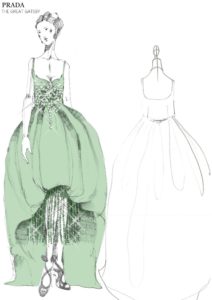 “La nostra collaborazione con Prada ricorda lo stile europeo che negli anni ’20 si era affermato presso gli aristocratici della East Coast” ha tenuto a sottolineare Catherine Martin “la moda dell’epoca ha visto l’emergere di una dicotomia tra chi aspirava al look privilegiato, da Ivy League della ricca Long Island, e chi invece si rifaceva al glamour, alla ricercatezza e alla decadenza europei. La nostra collaborazione con Prada riflette lo scontro tra questi due canoni estetici.”