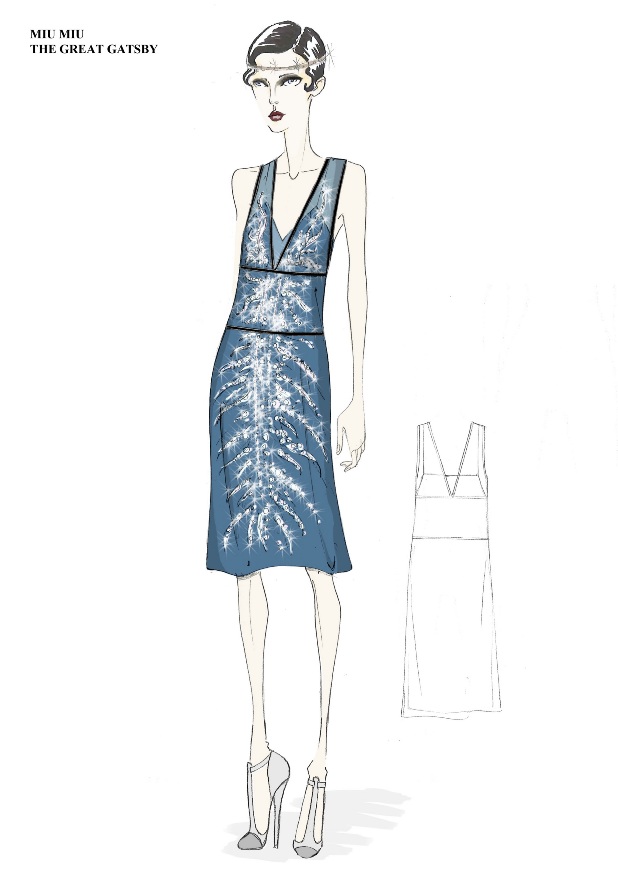 I costumi hanno un vero e proprio ruolo da protagonista nel film: le mise sono caratterizzate da abiti da sera in seta scintillante, ricamati con cristalli e paillettes, non possono mancare velluti, pelliccia e frange che danzano assecondando i movimenti del corpo. La palette cromatica include sfumature smeraldo, giada, topazio e oro. Nelle scene cruciali dei party, ambientati nella sontuosa villa di Gatsby, i modelli di Prada e Miu Miu praticamente rubano la scena. Il pezzo forte è un abito da sera Prada, in oro e interamente ricoperto di cristalli, indossato dalla Daisy Buchanan interpretata da Carey Mulligan.