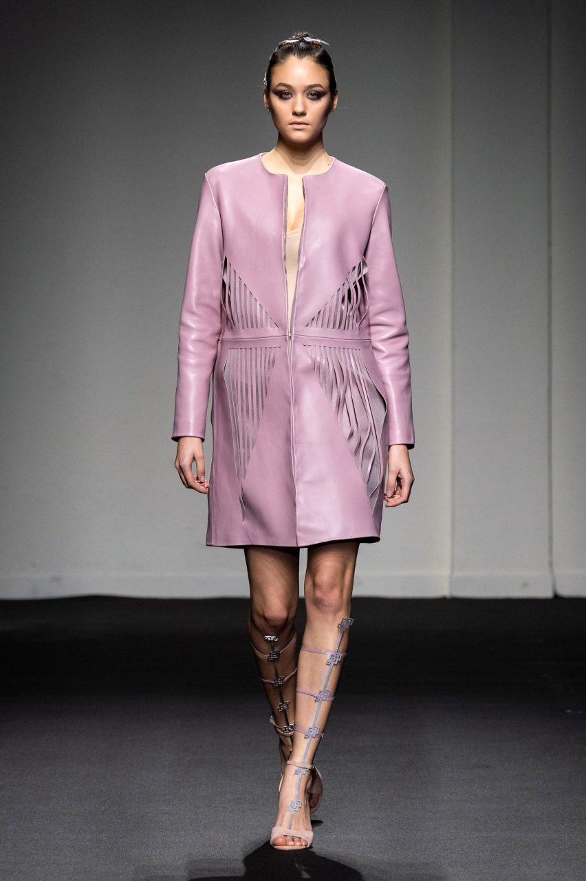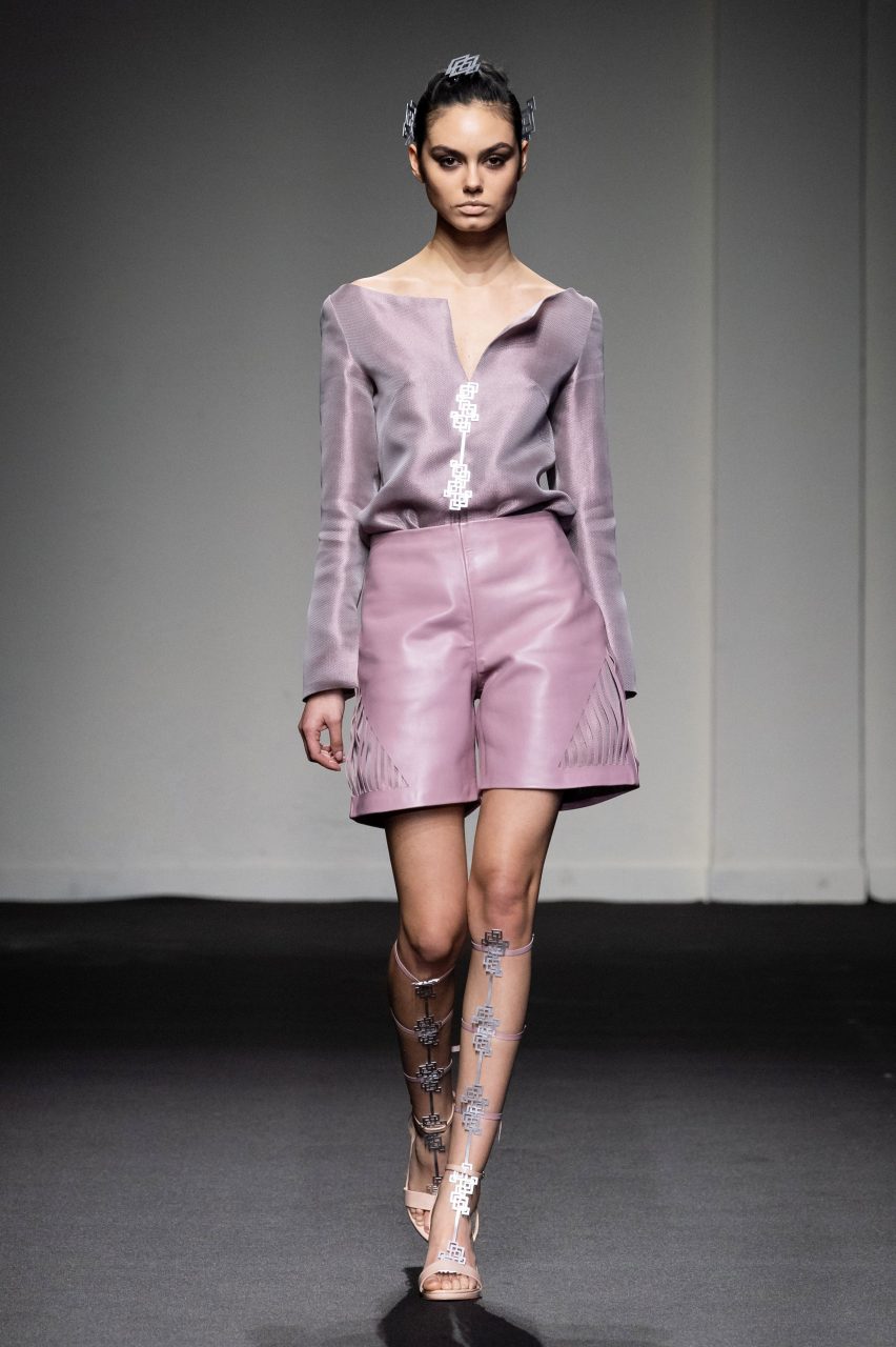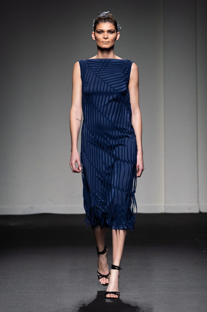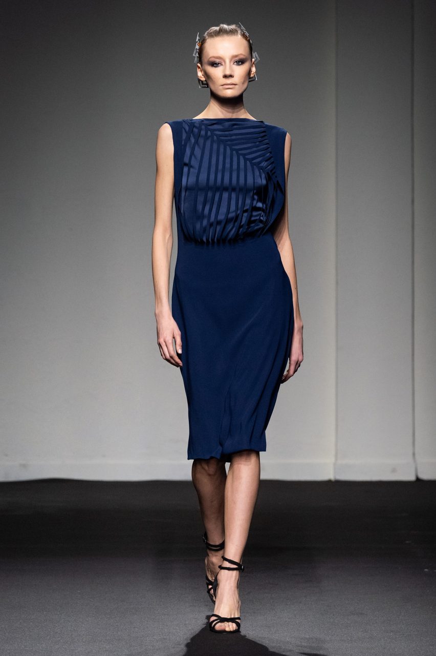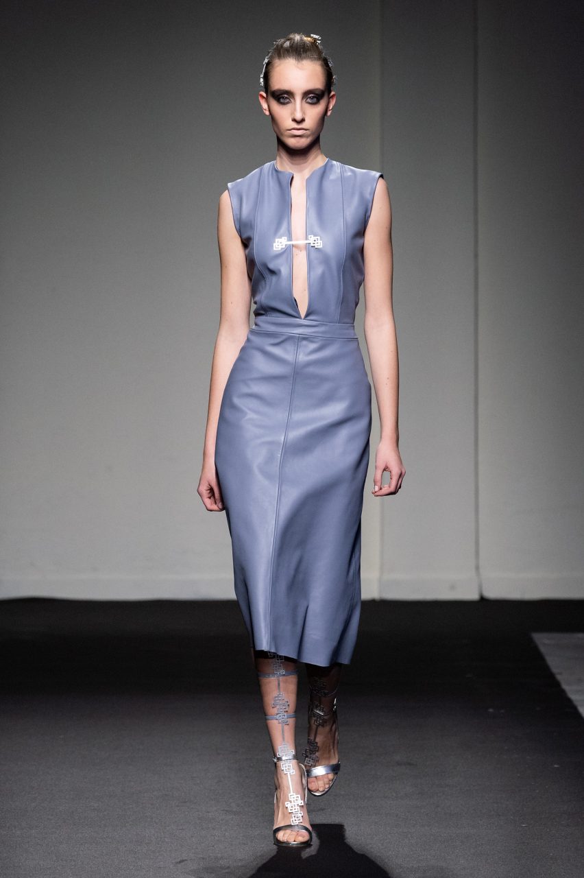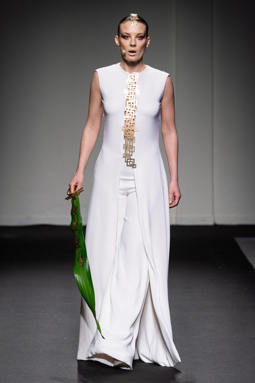 Donne di una femminilità sensuale ed assertiva che la designer esprime proponendo una collezione che celebra uno stile elegante dove ci si veste per sedurre e ci si copre per proteggersi. Ad enfatizzare l’aspetto marziale delle guerriere ci sono le acconciature con capelli morbidamente raccolti da fermagli metallici per emulare eleganti elmi a protezione del capo.