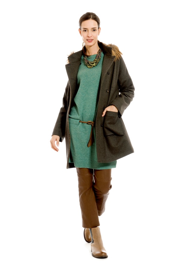 Partiamo dai colori che è la prima sensazione che ci viene incontro. I colori di base restano i brown declinati in tonalità calde: cammello, cannella, sigaro. Il grigio è abbinato al beige ma si arricchisce di particolari, come i bordi di perline, o di pelo; il mandarino, il becco d’oca si aggiungono ai verdi